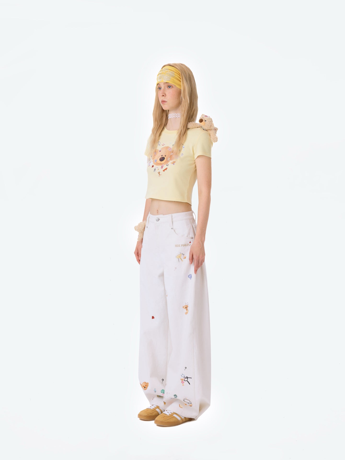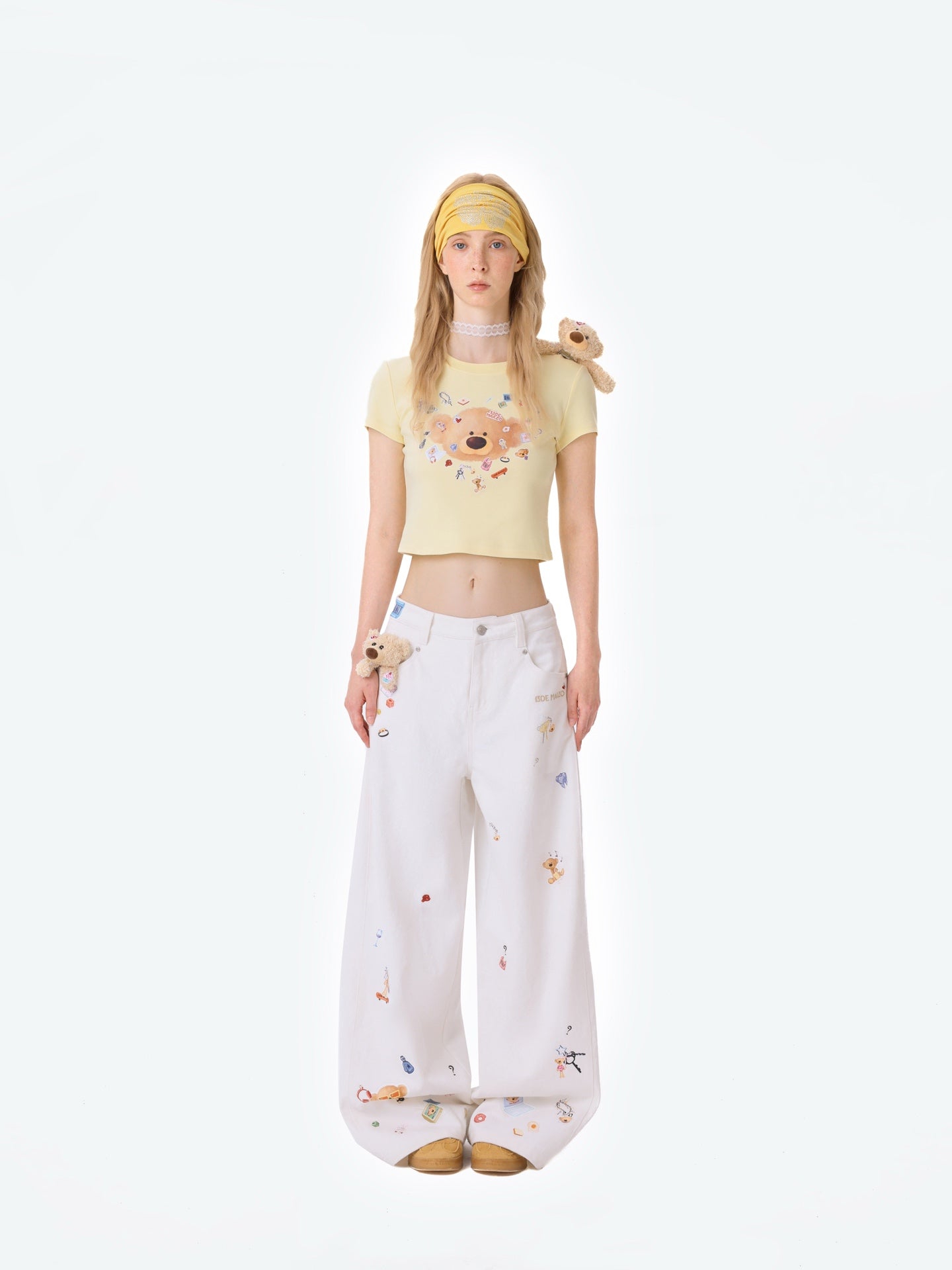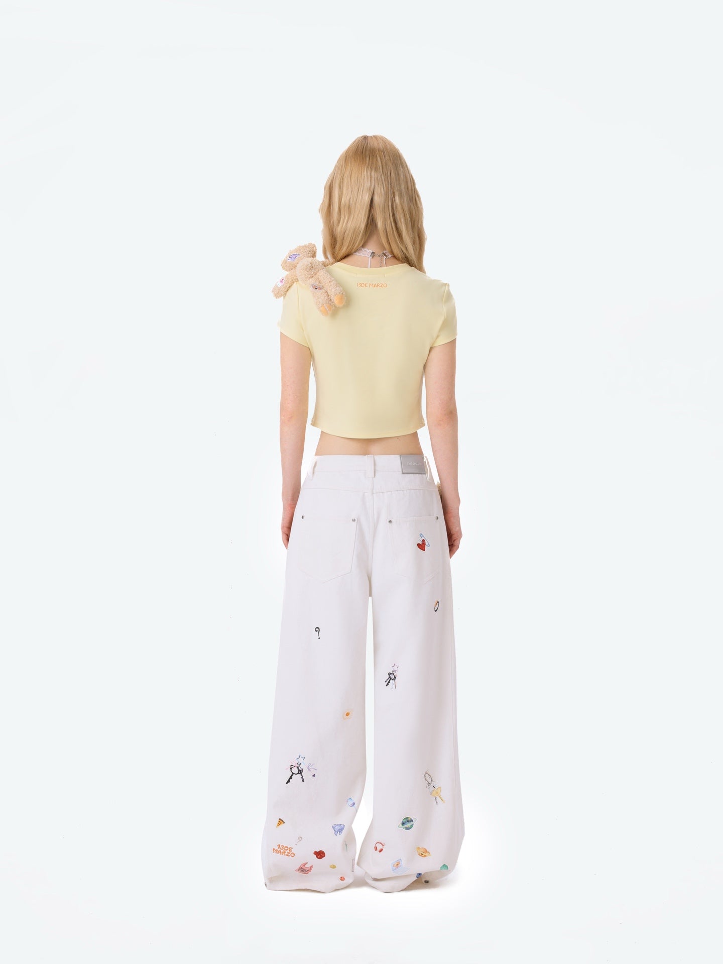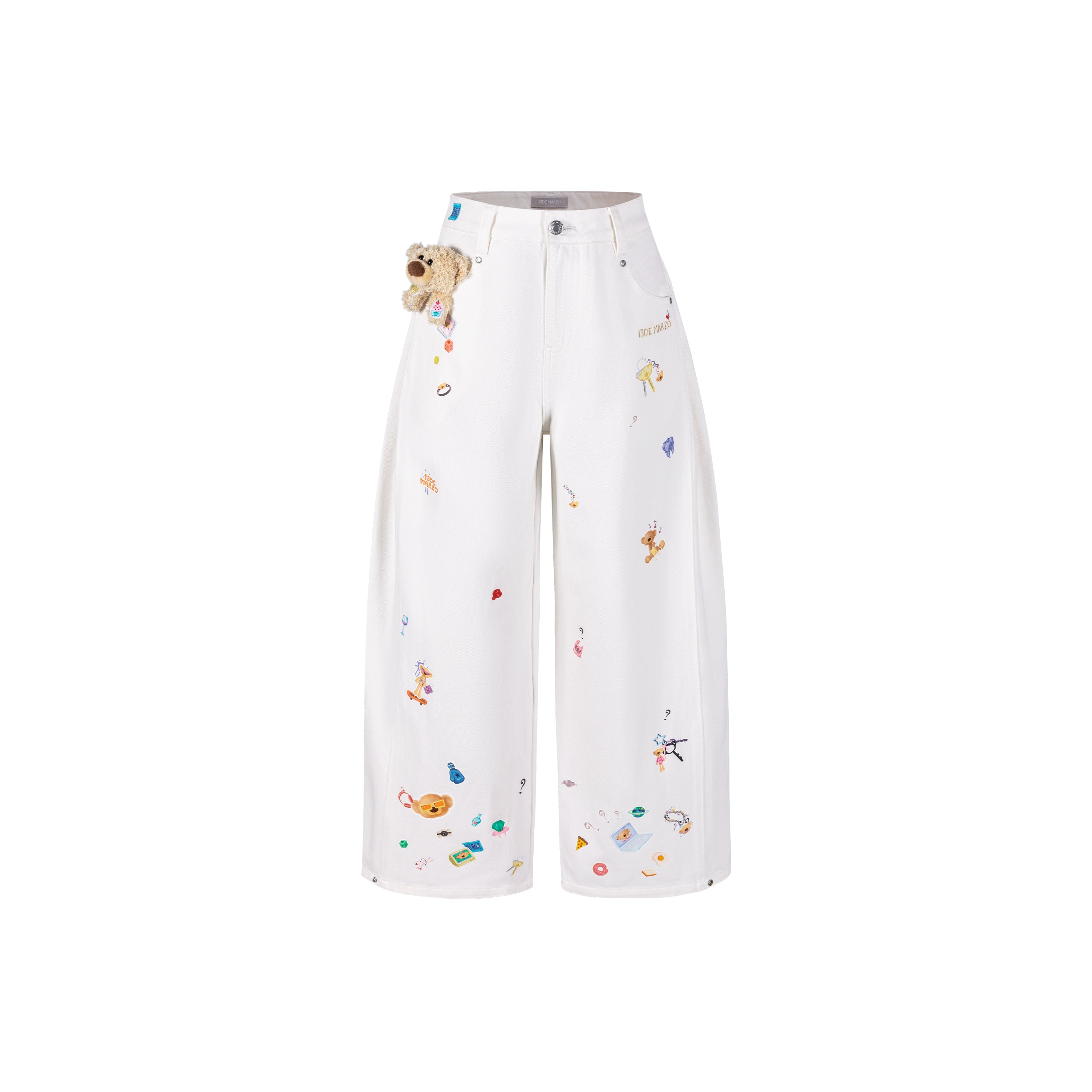 13DE MARZO | 2512 Bear Stickers Jeans White