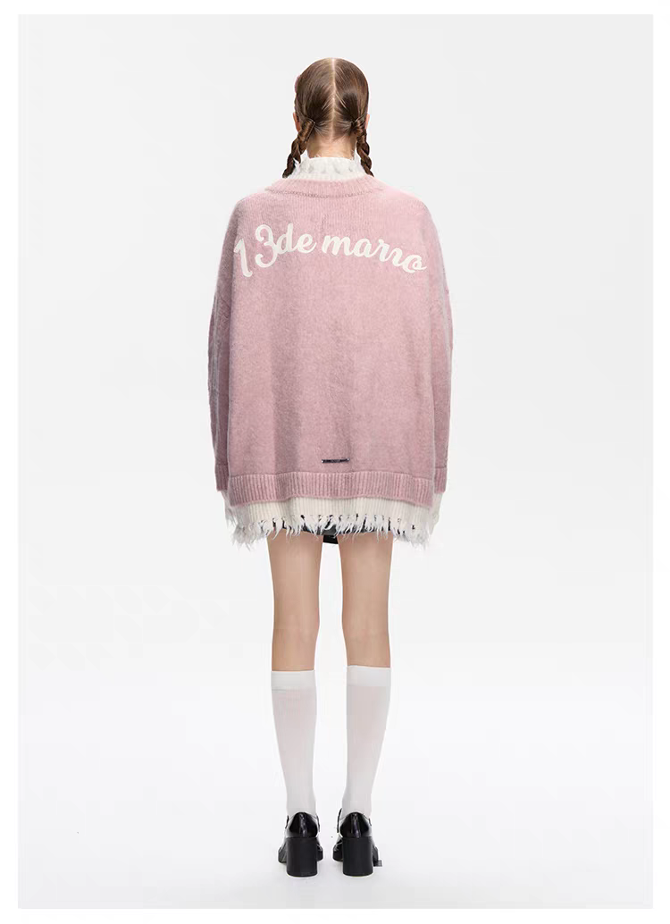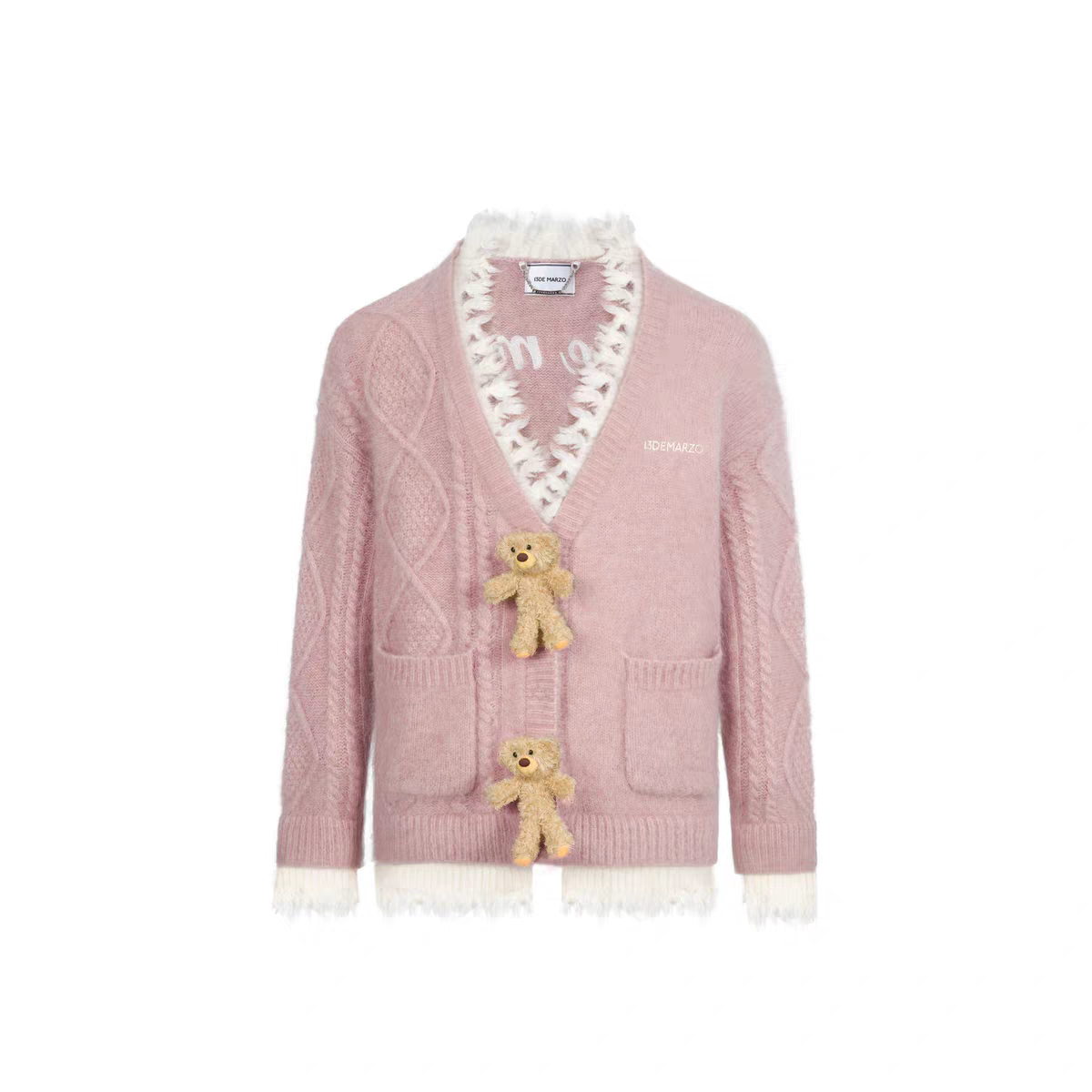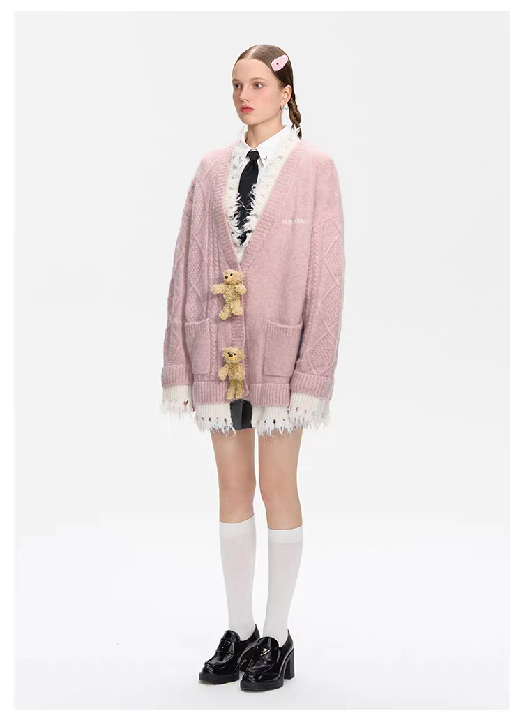13DE MARZO | 2601 Bear Button Unedged Cardigan Pink