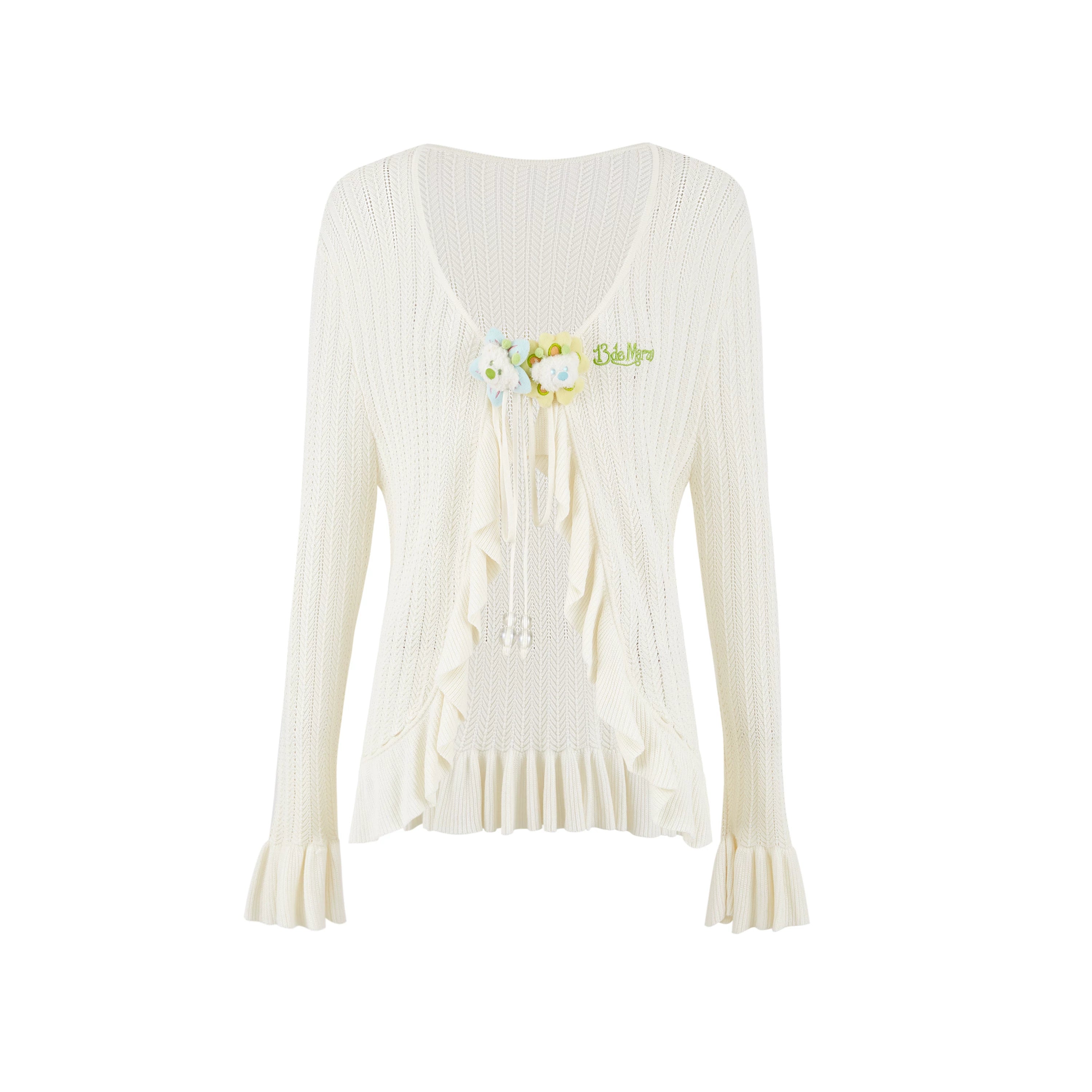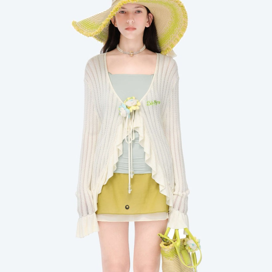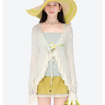13DE MARZO | 2601 Floral Lines Hollow Cardigan Beige