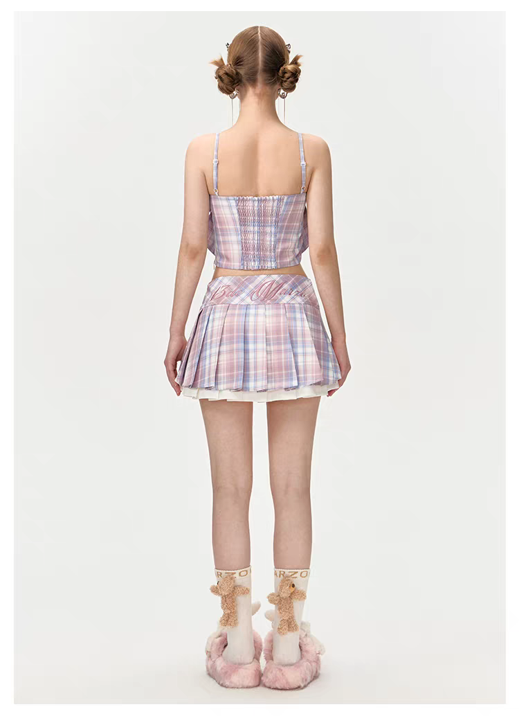 13DE MARZO | 2601 Plaid Low Waist Pleated Skirt