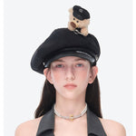 13DE MARZO | 2602 Glass Print Octagonal Beret Black