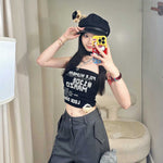 13DE MARZO | 2602 Silver Foil Chain Print Bustier Top Black