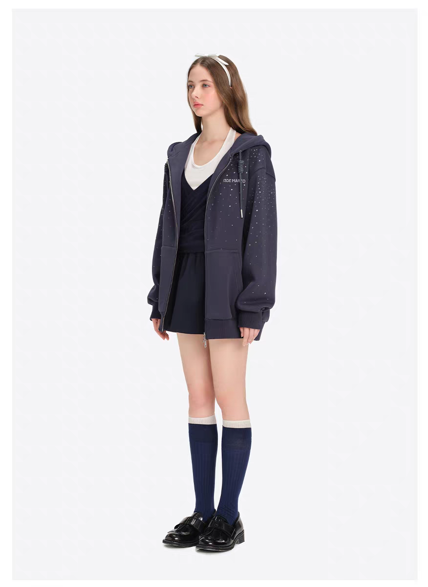 13DE MARZO | 2604 Shine Logo Zip Hoodie Royal Blue
