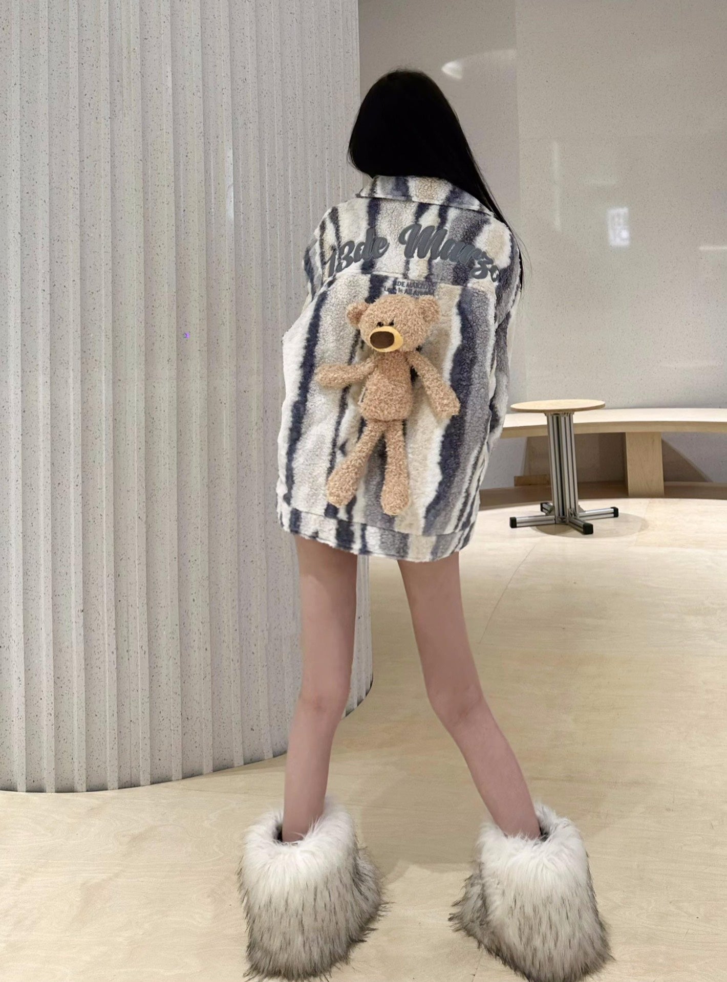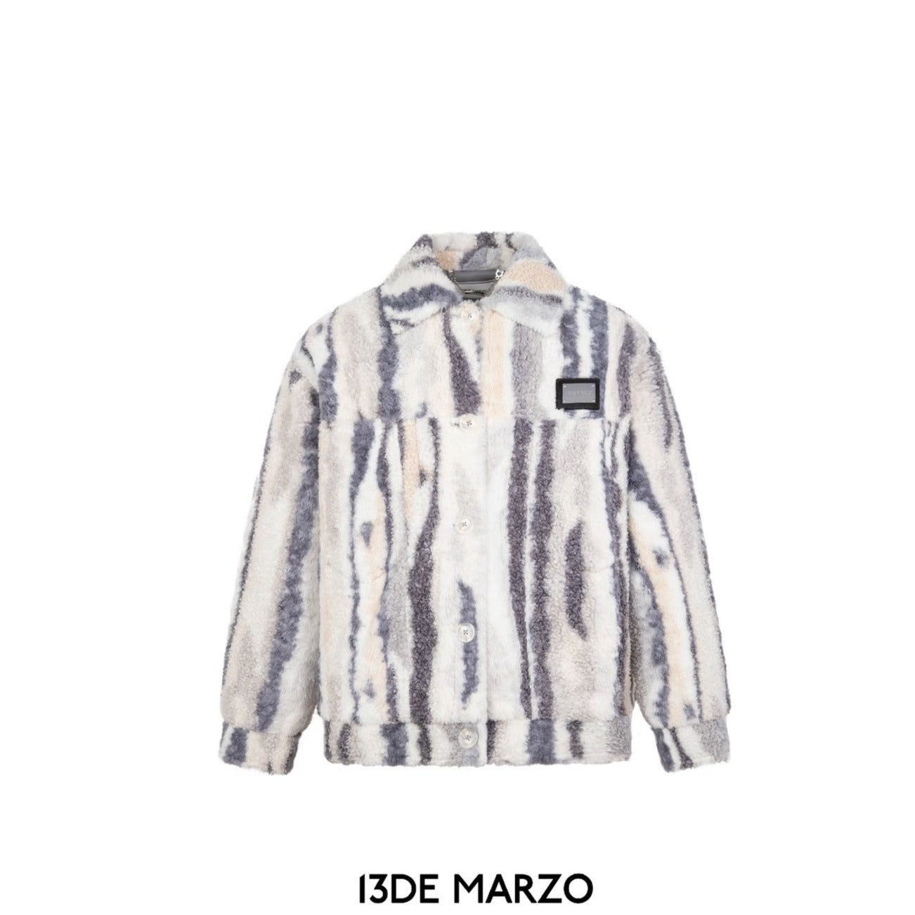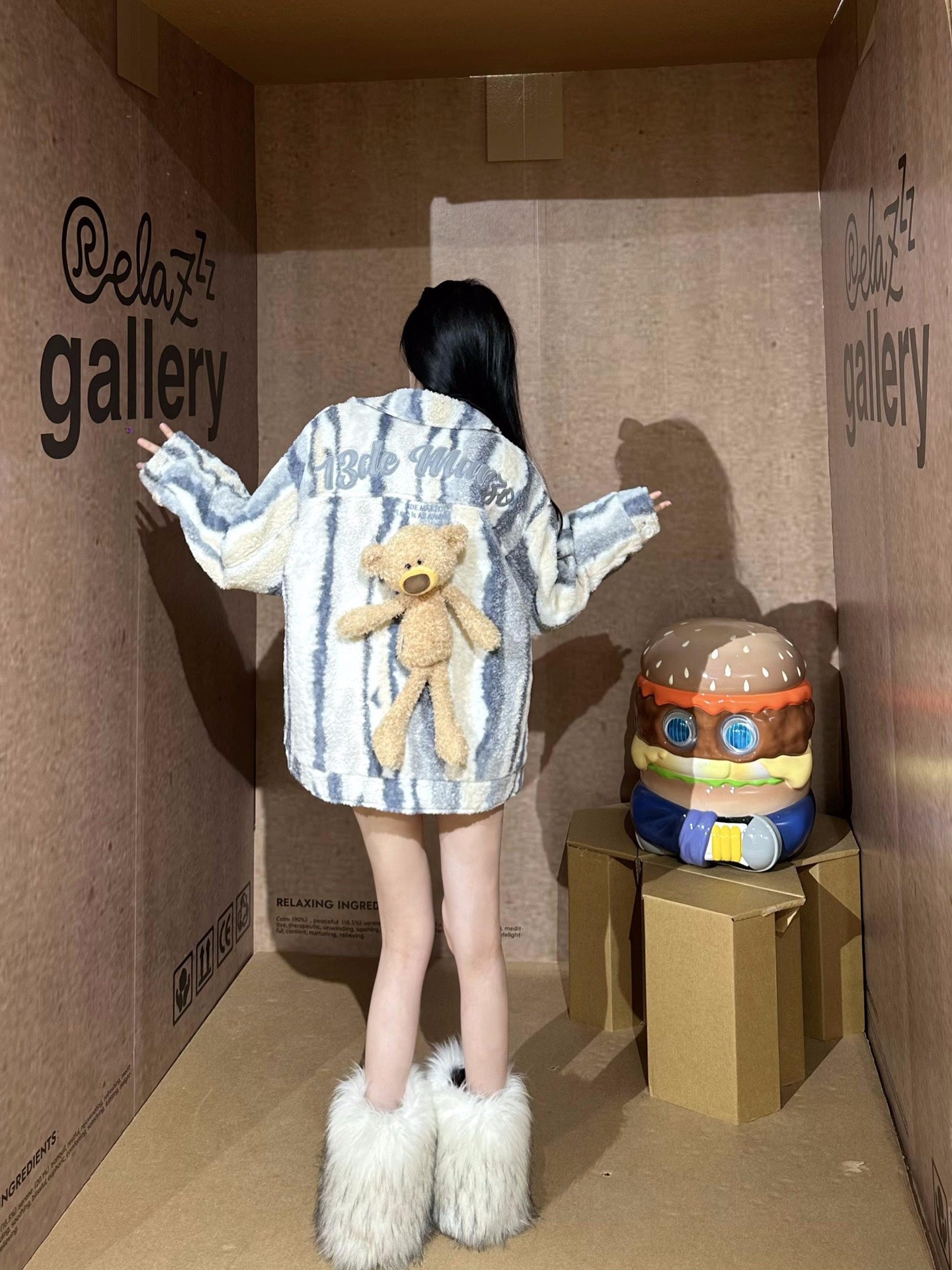 13DE MARZO | SS2309 Bear Stripe Fleece Coat Grey