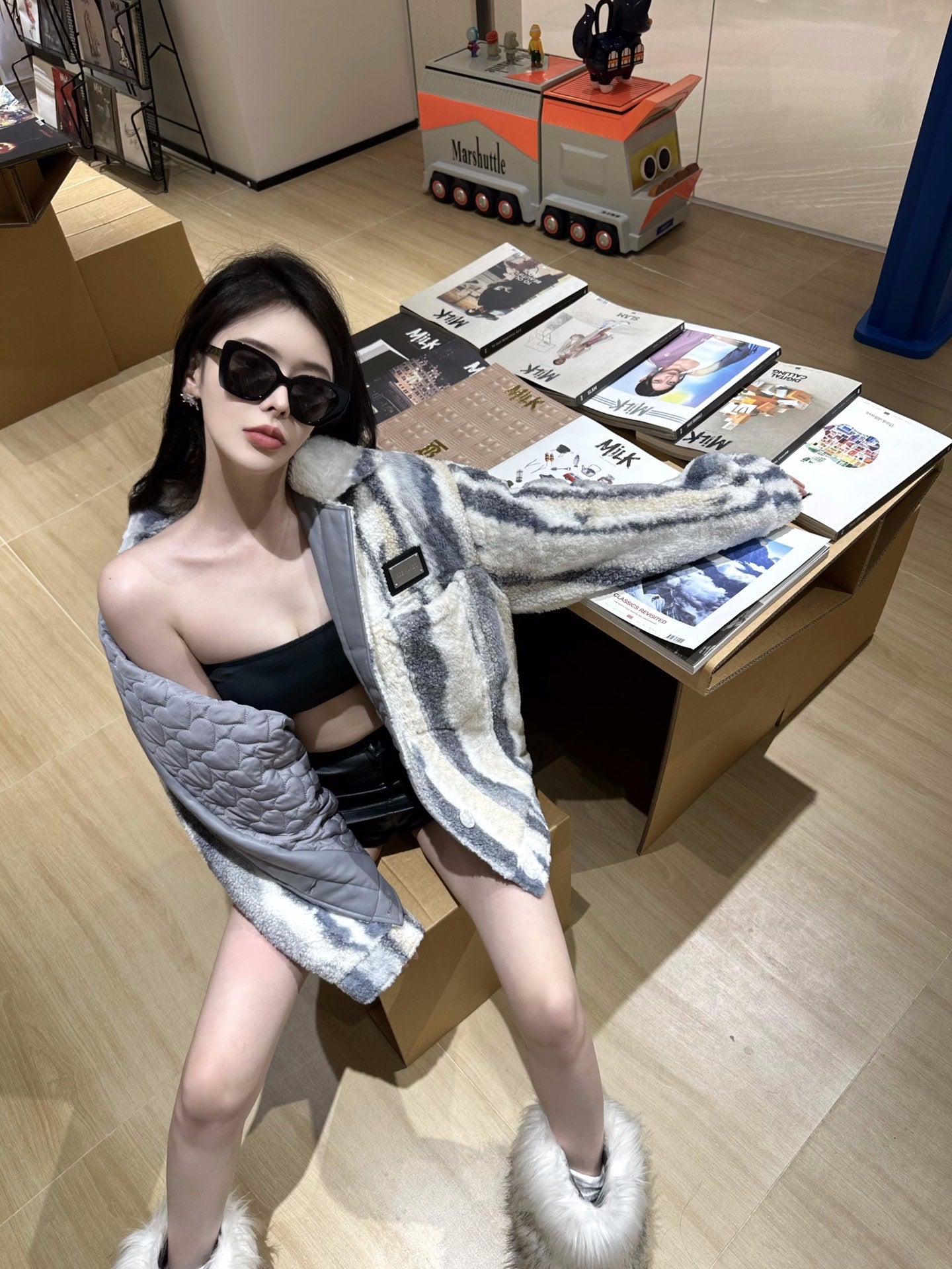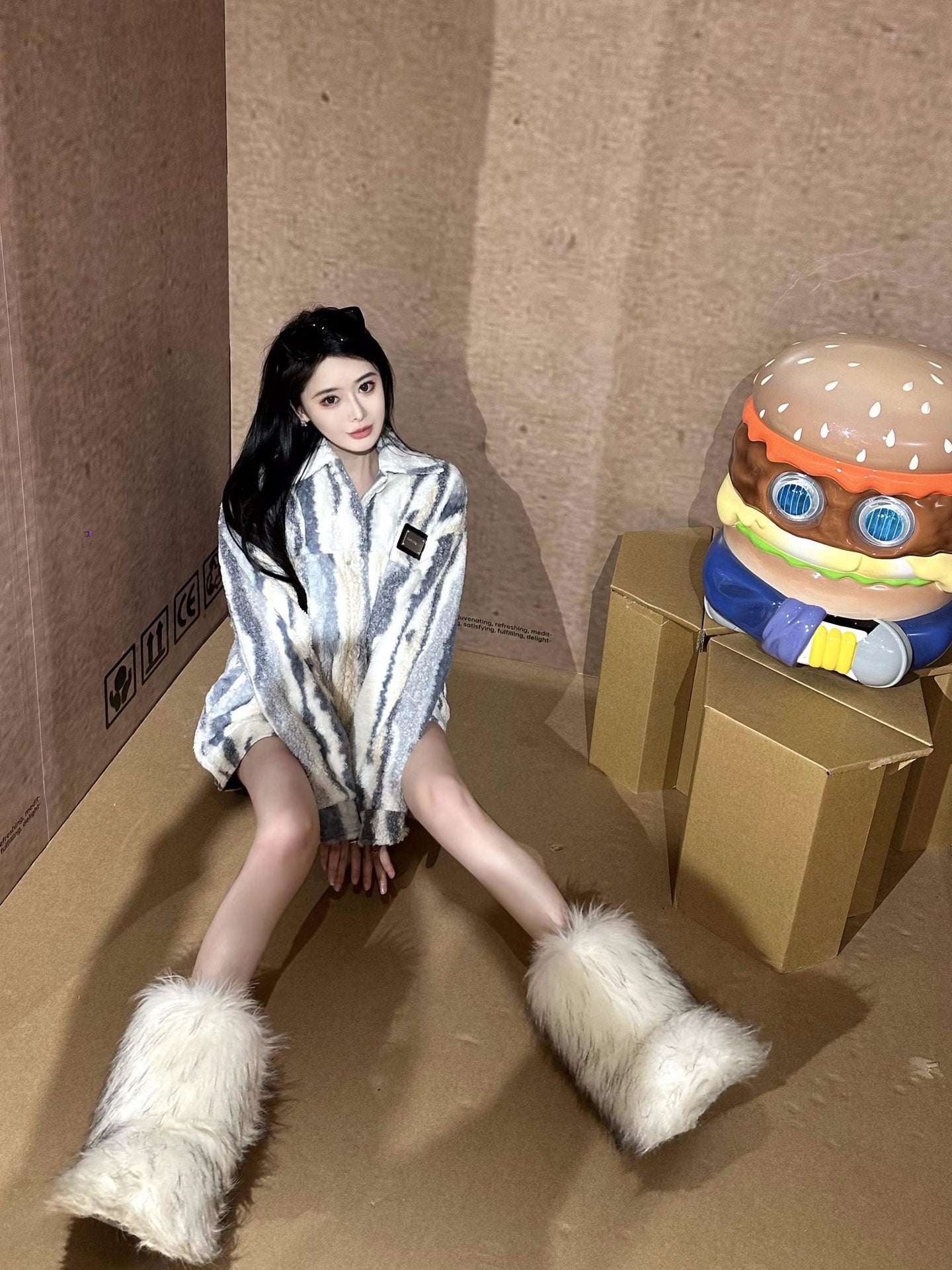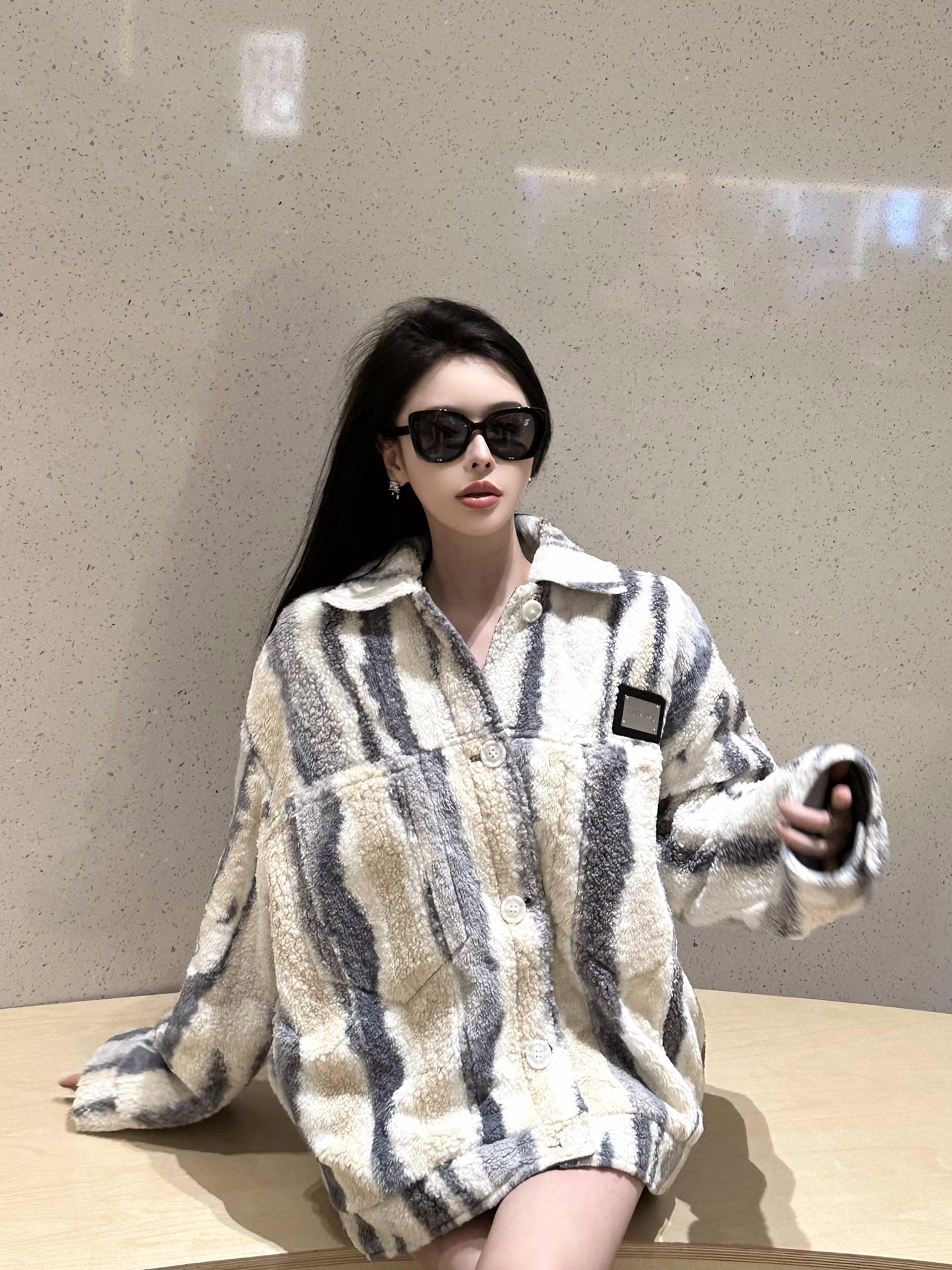 13DE MARZO | SS2309 Bear Stripe Fleece Coat Grey