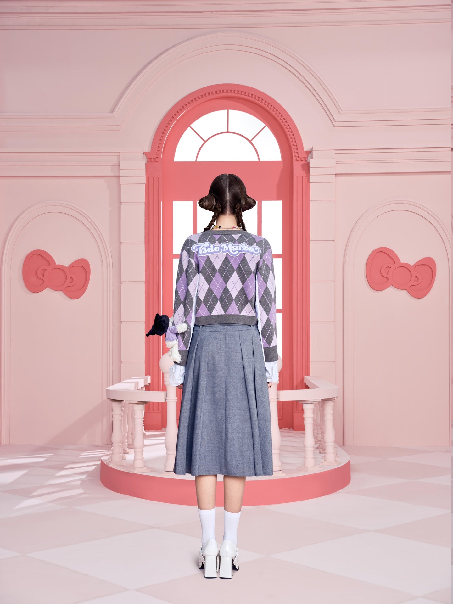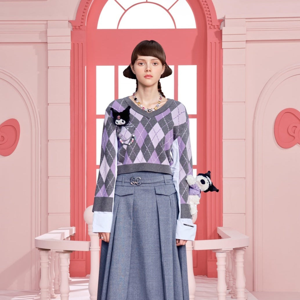 13DE MARZO | SS2309 Kuromi Bear Dimond Check Sweater