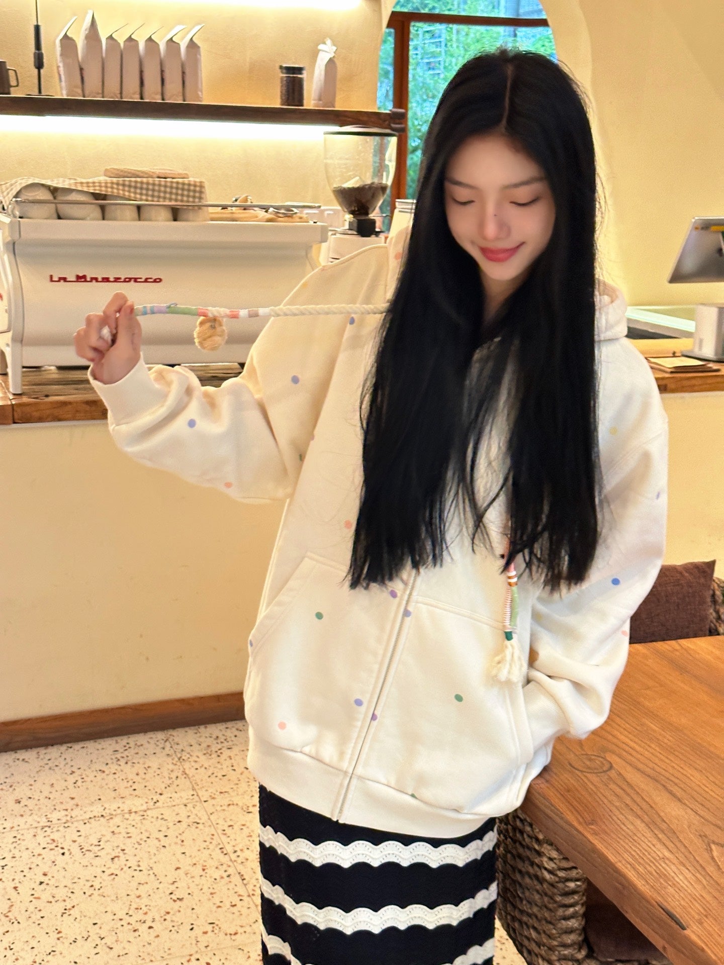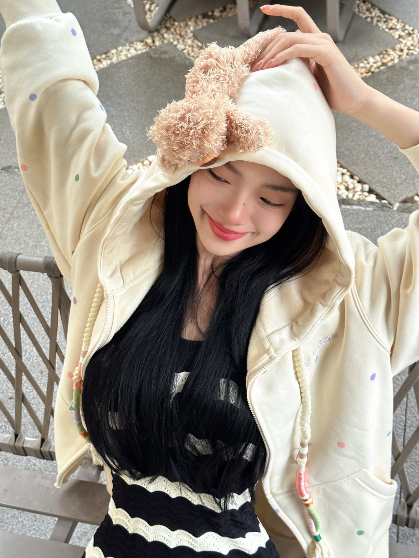 13DE MARZO | SS2310 Bear Colorful Dots Zip Hoodie