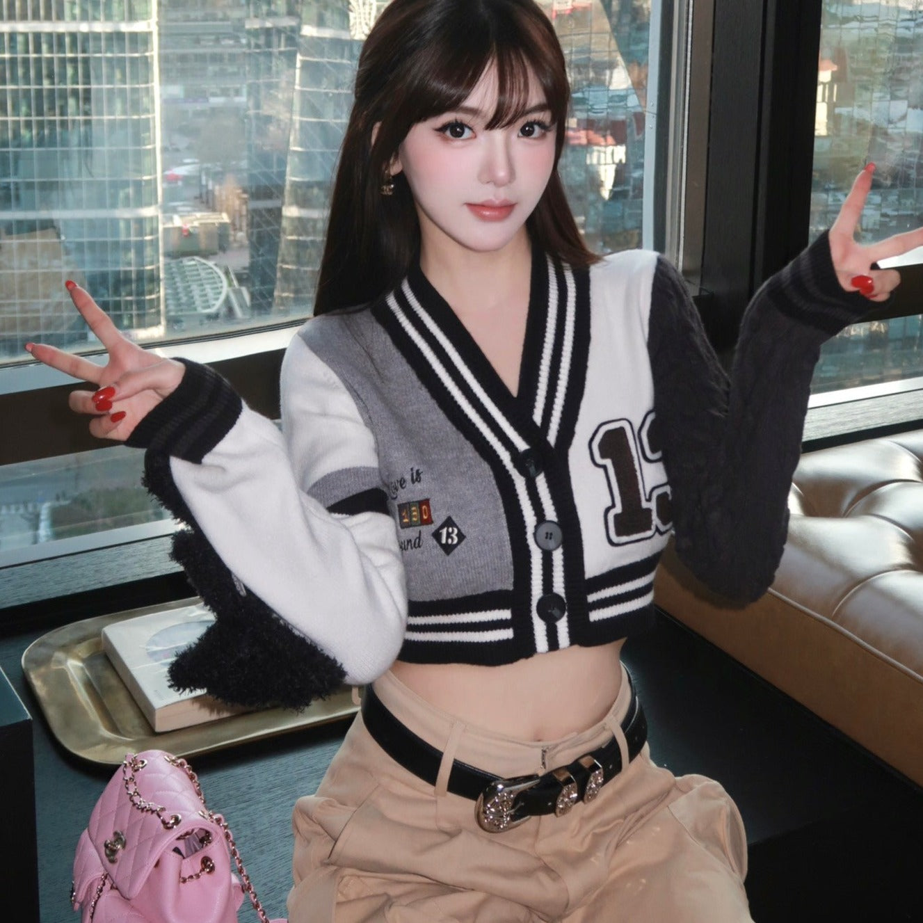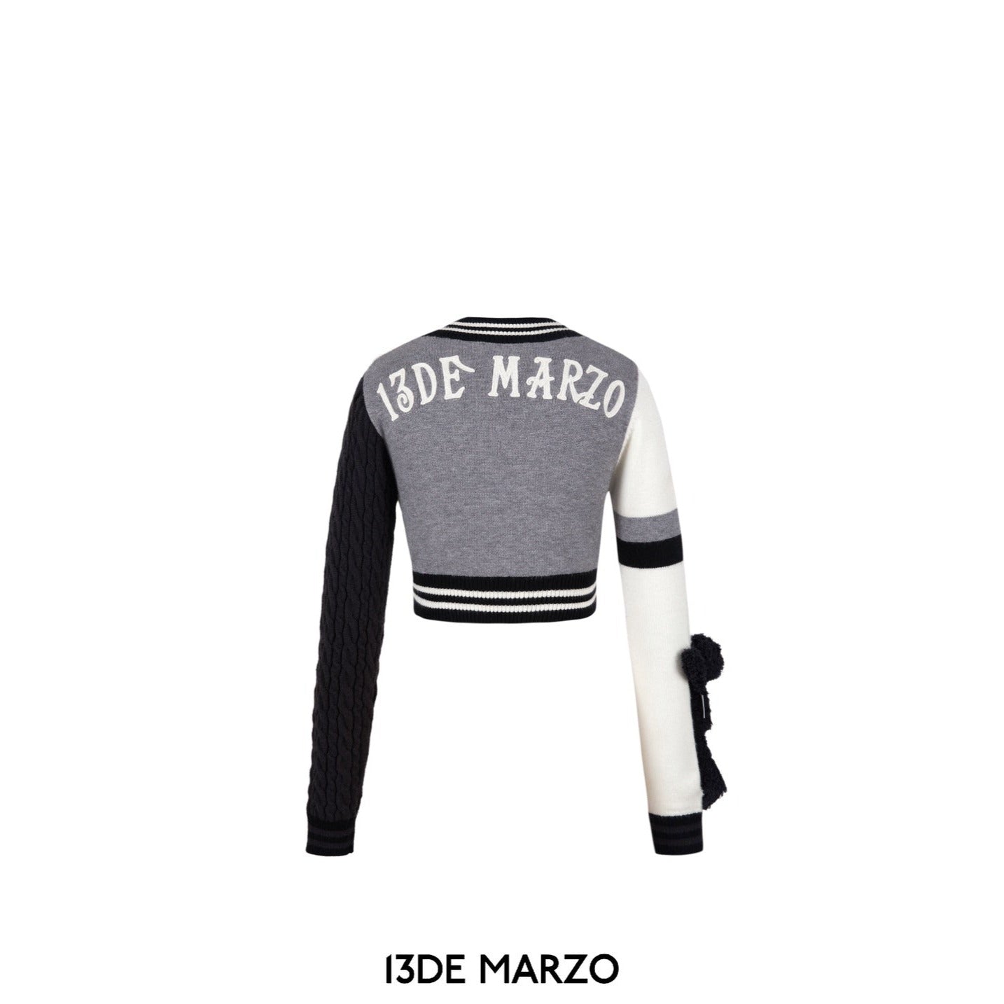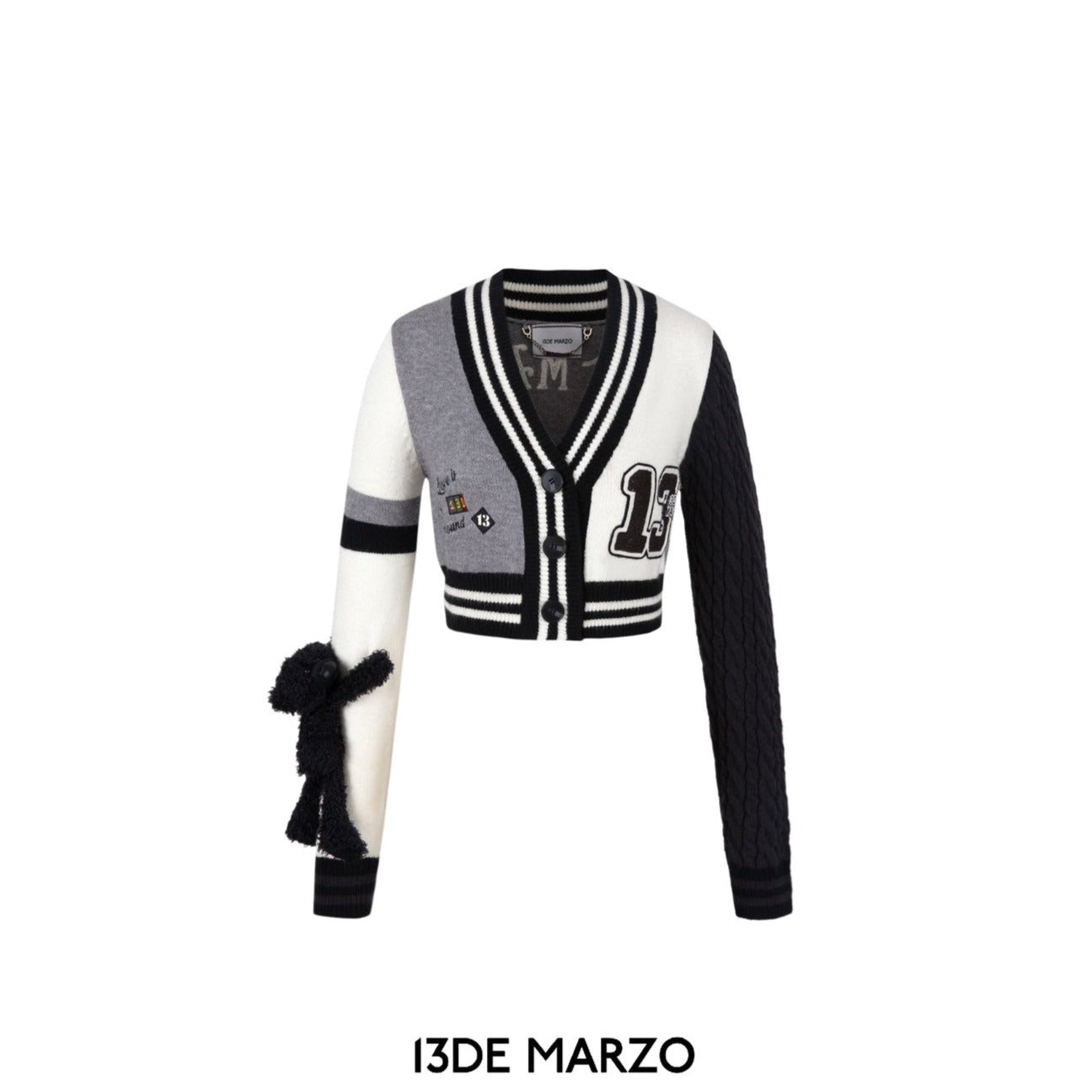 13DE MARZO | SS2401 Color Match V-neck Campus Cardigan Black