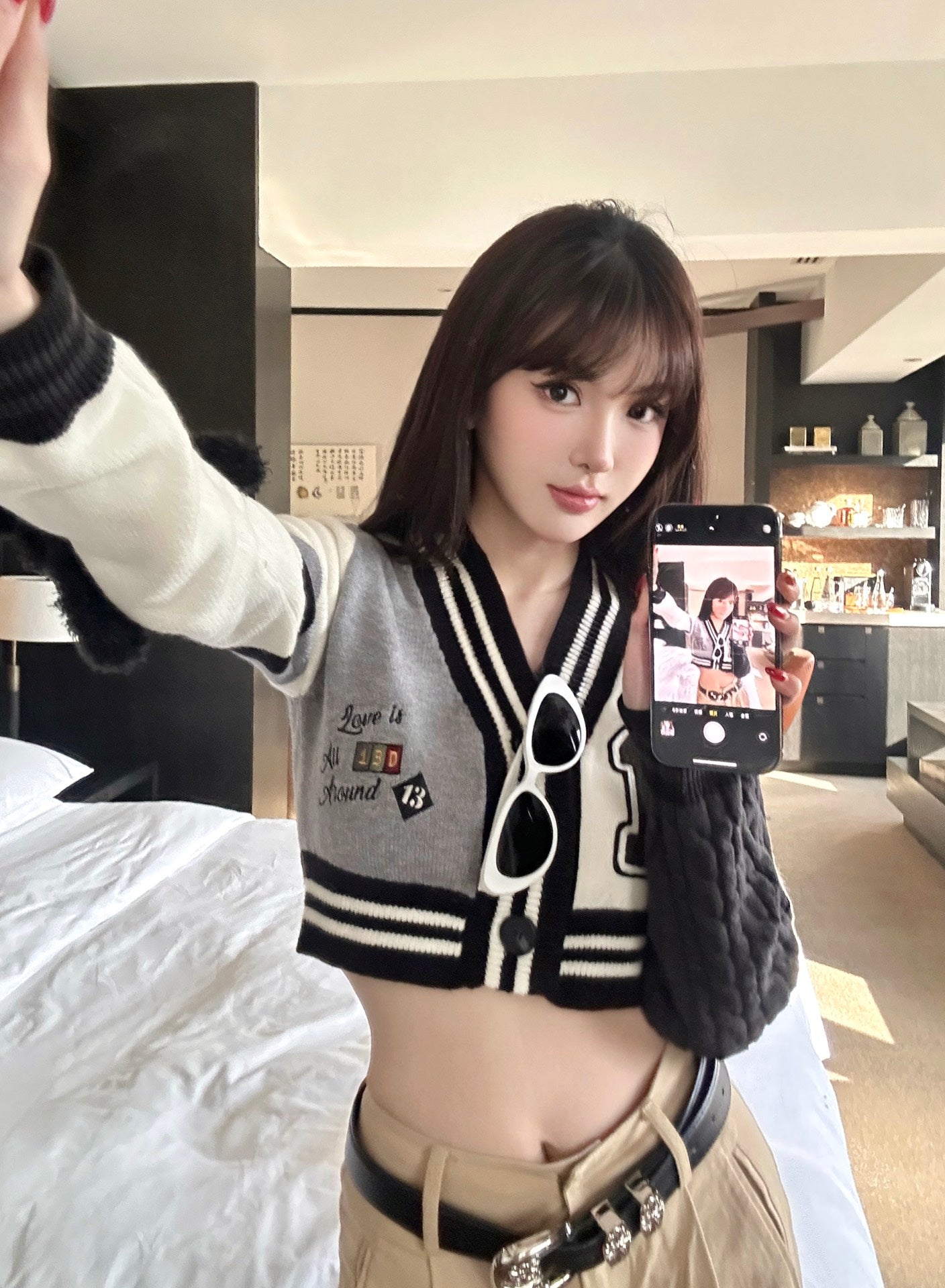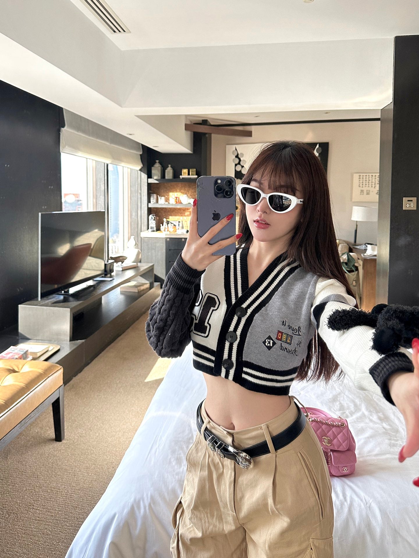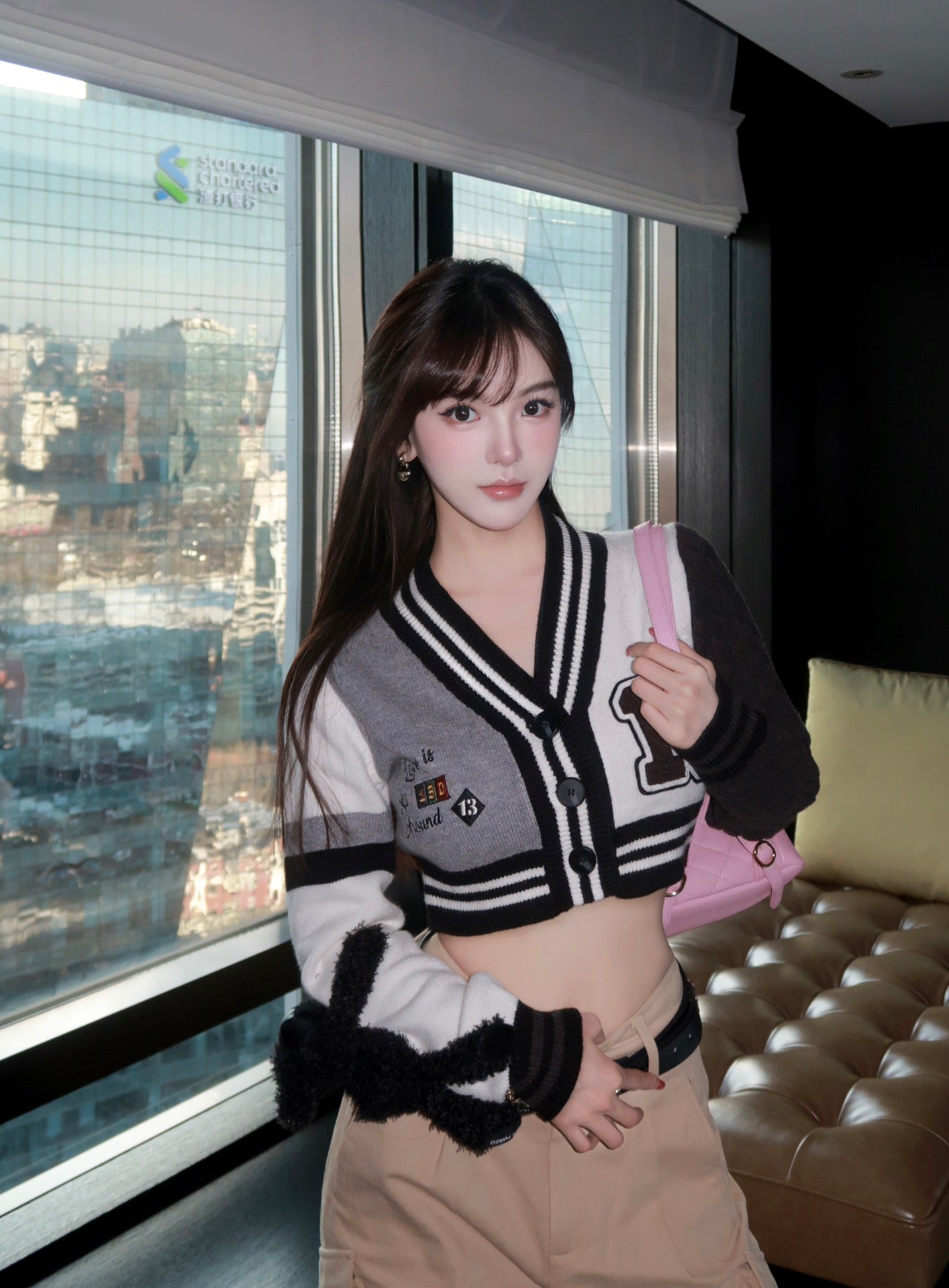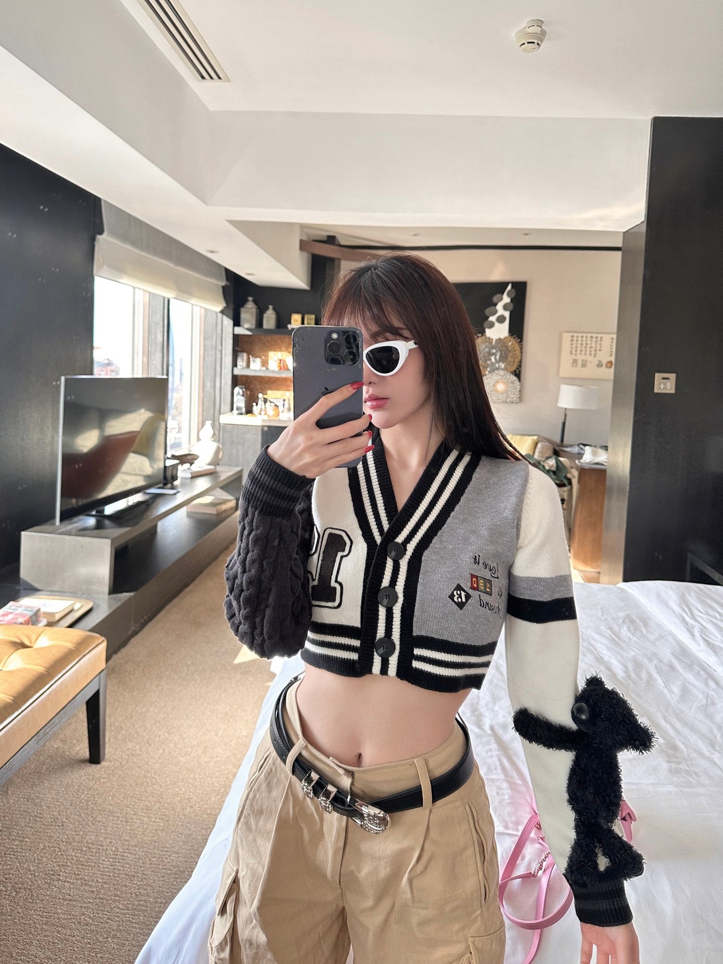 13DE MARZO | SS2401 Color Match V-neck Campus Cardigan Black
