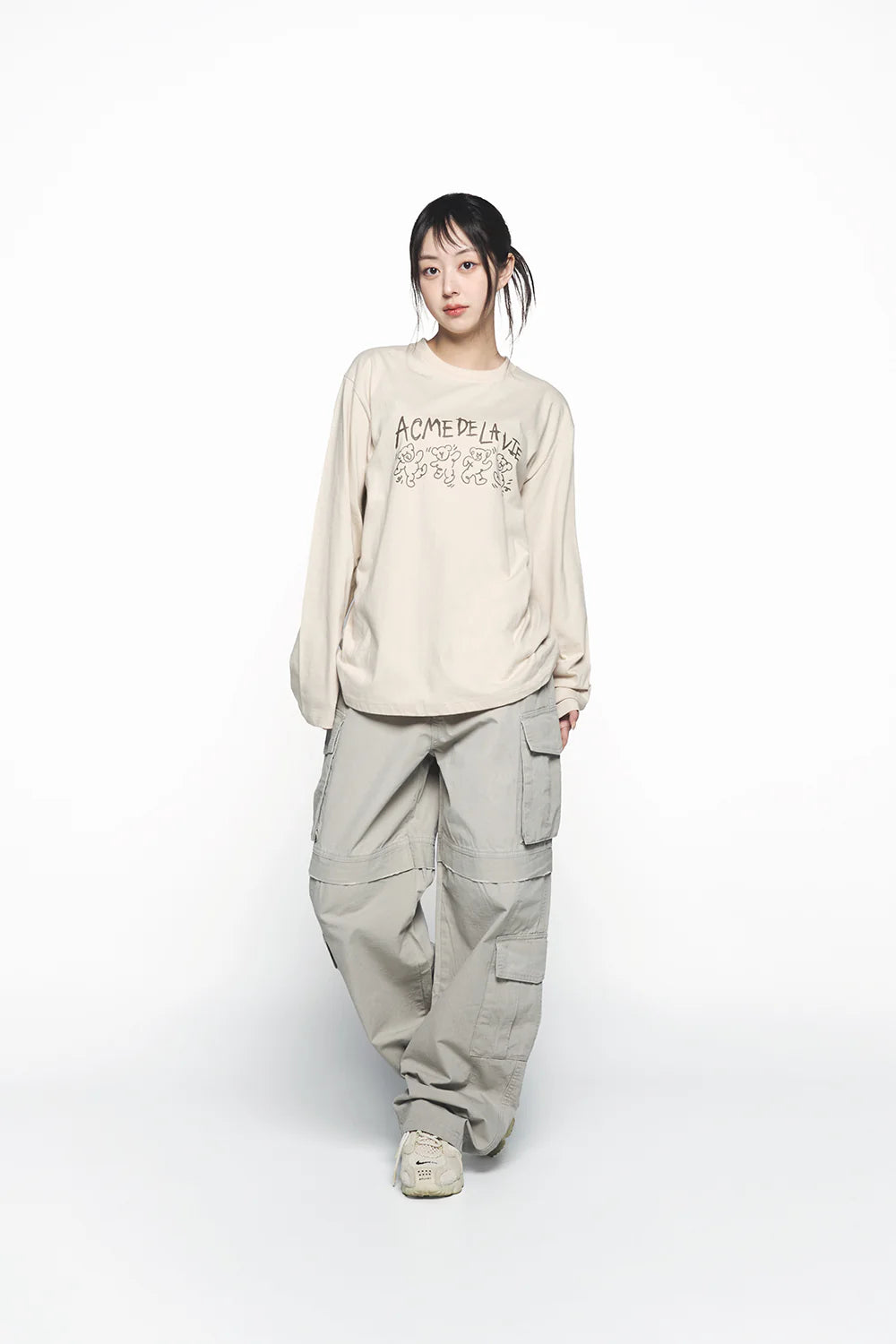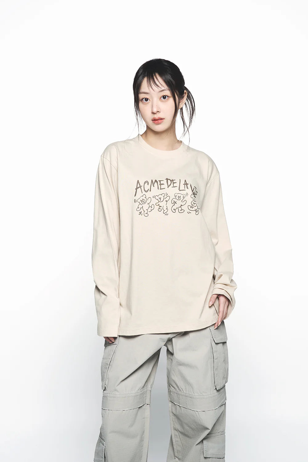 ADLV 2509 跳舞小熊印花长袖T恤 深米
