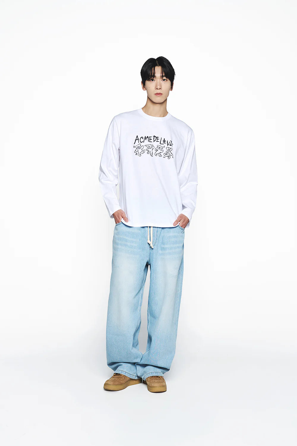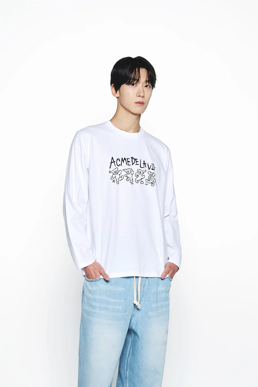 ADLV 2509 跳舞小熊印花长袖T恤 白