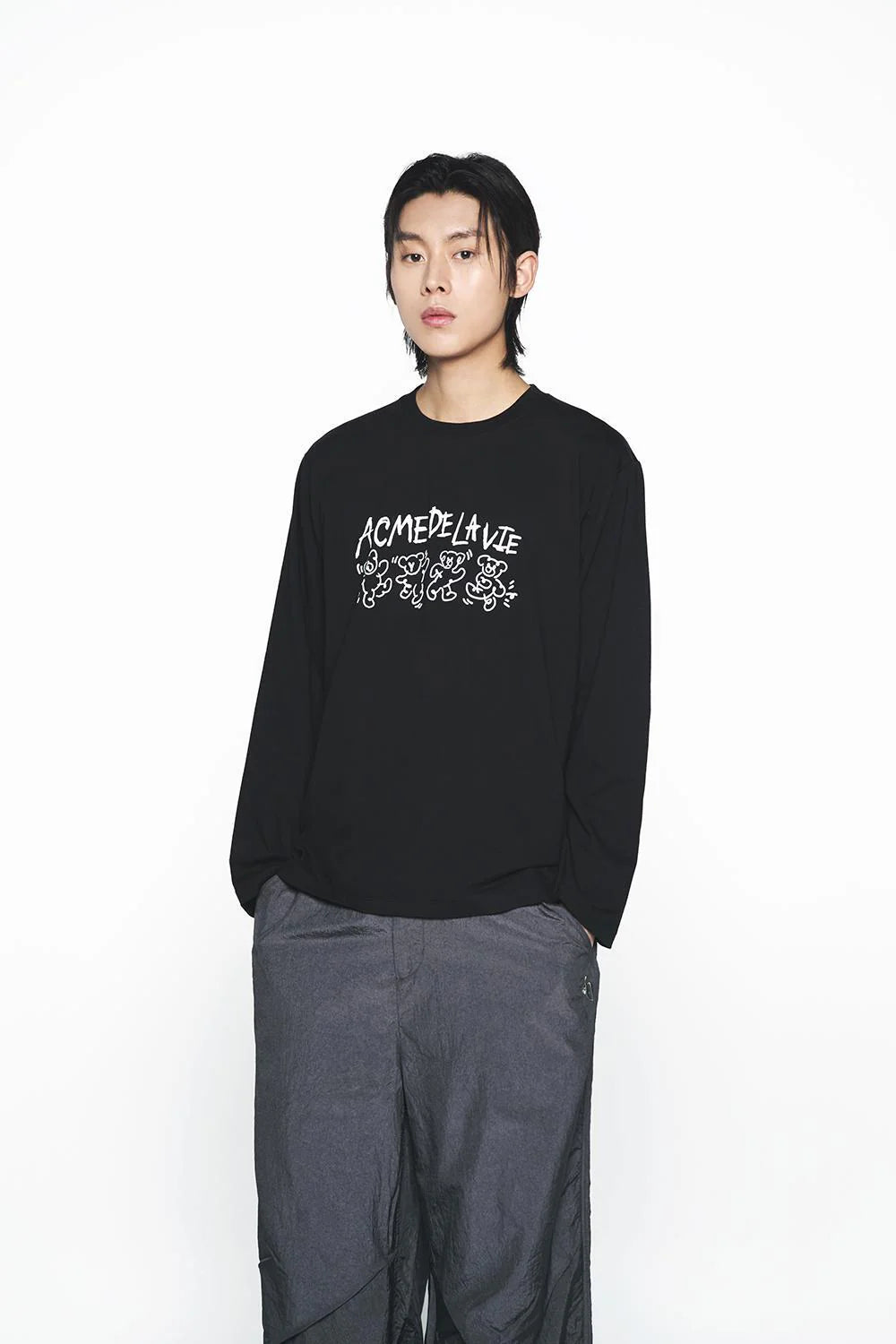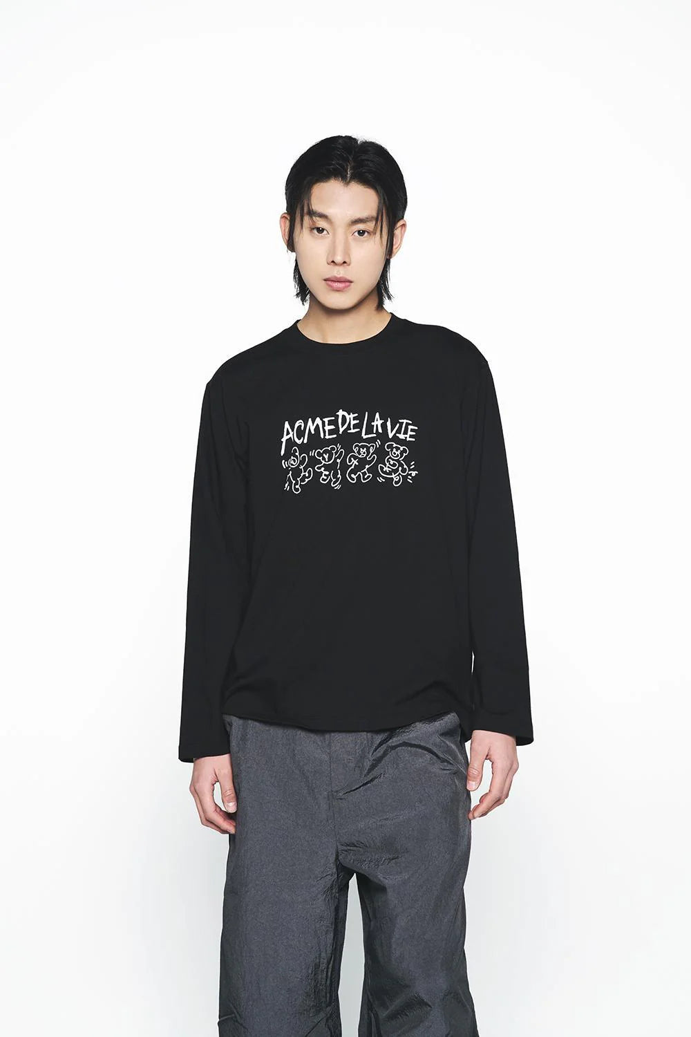 ADLV 2509 跳舞小熊印花长袖T恤 黑