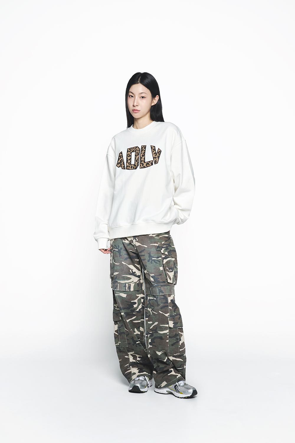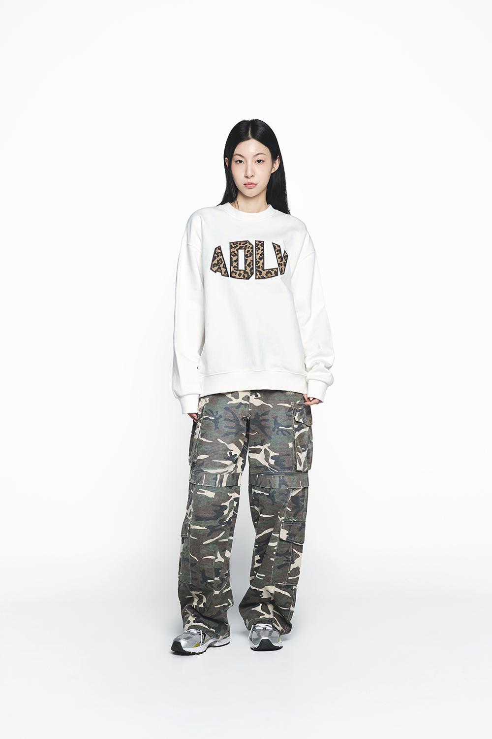 ADLV 2510 拼接刺绣圆领套头卫衣 白
