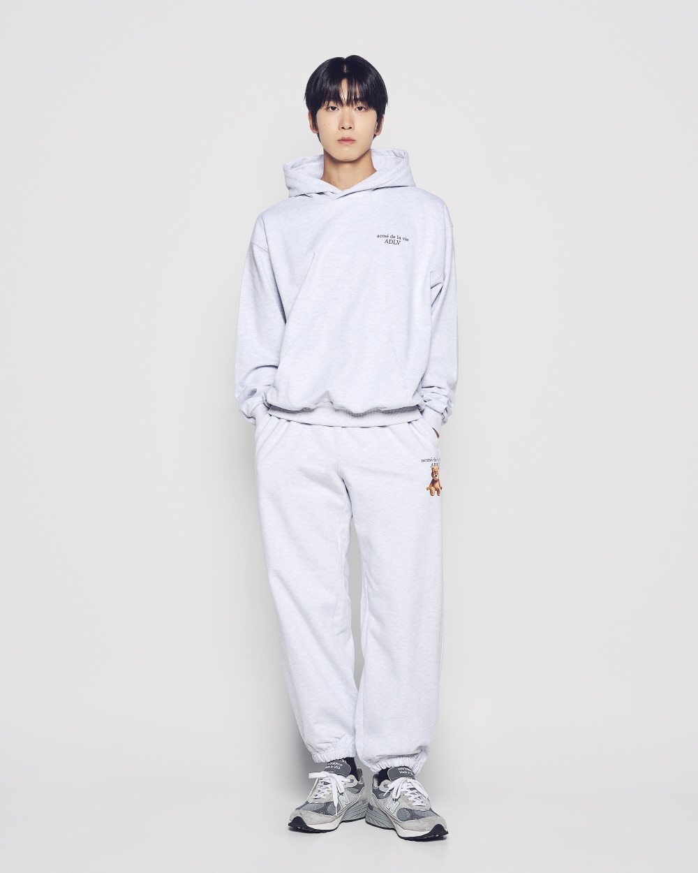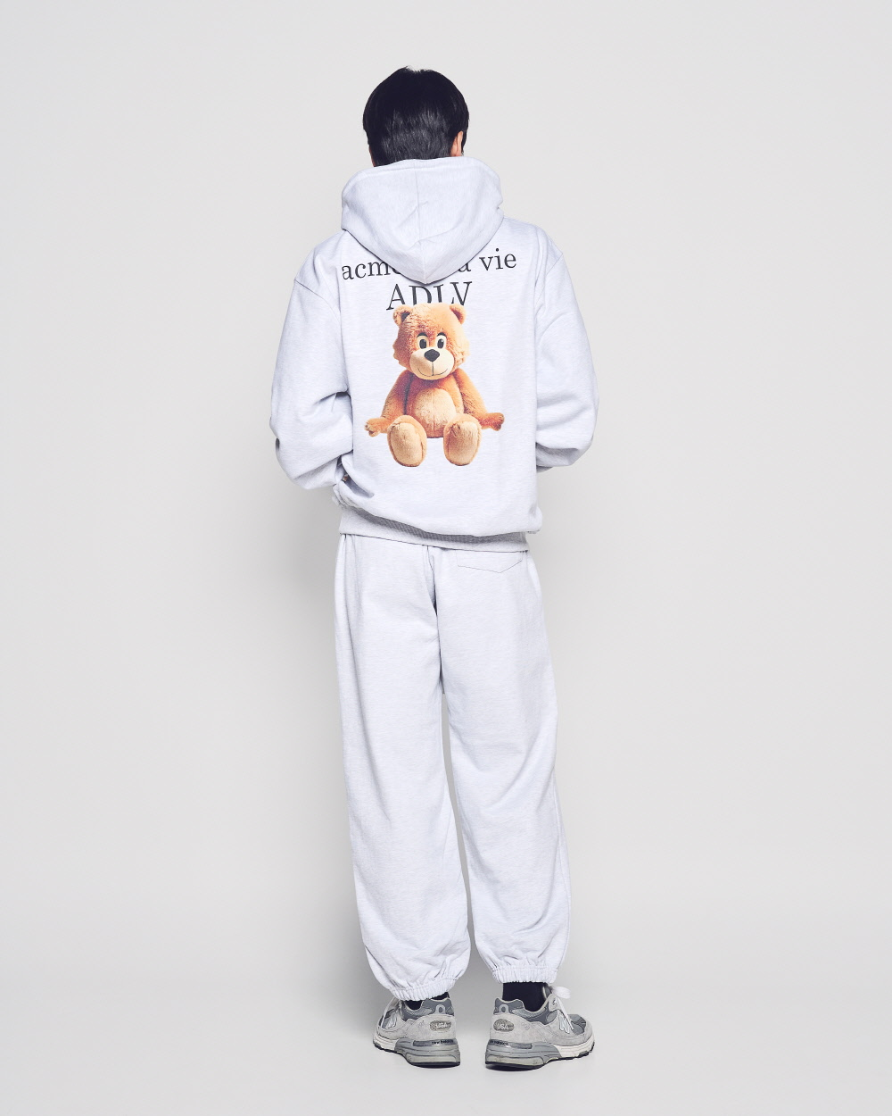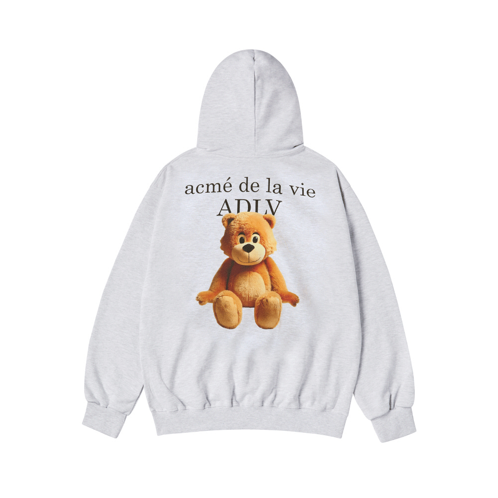 ADLV 2601 后背小熊印花连帽卫衣 灰