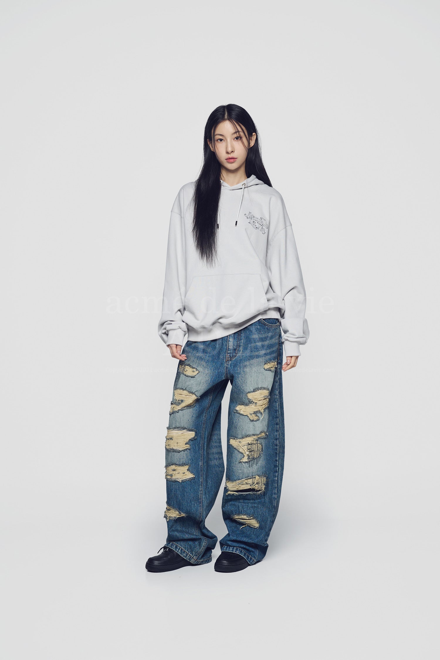 ADLV 2512 模糊素描熊连帽衫 灰
