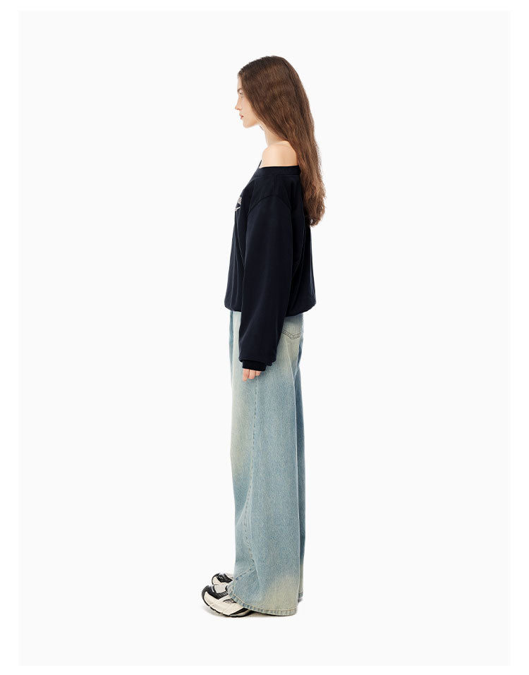 ANN ANDELMAN 2409 印花斜领单肩卫衣 宝蓝