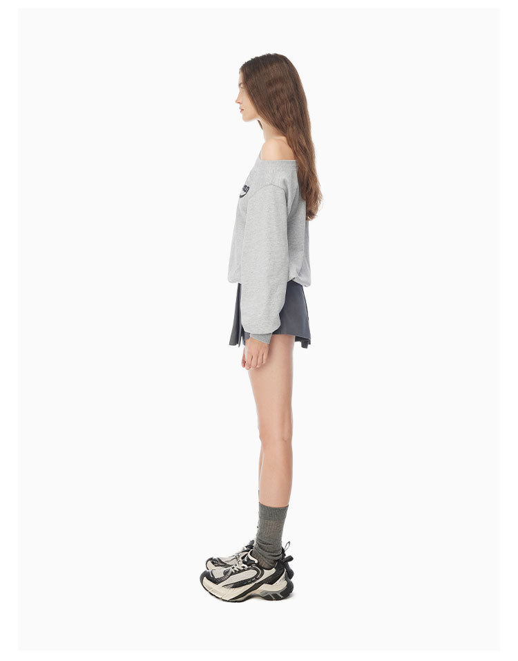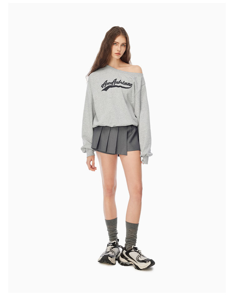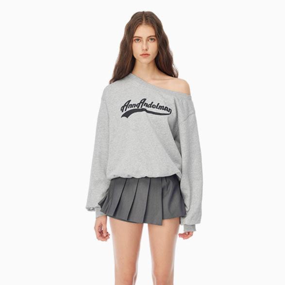 ANN ANDELMAN 2409 印花斜领单肩卫衣 灰