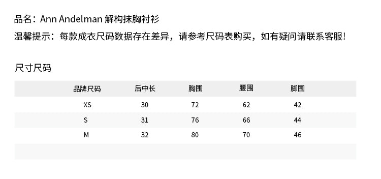 ANN ANDELMAN 2507 解构抹胸衬衫上衣