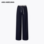 ANN ANDELMAN 2509 直筒松紧腰拼接条纹休闲西裤 蓝