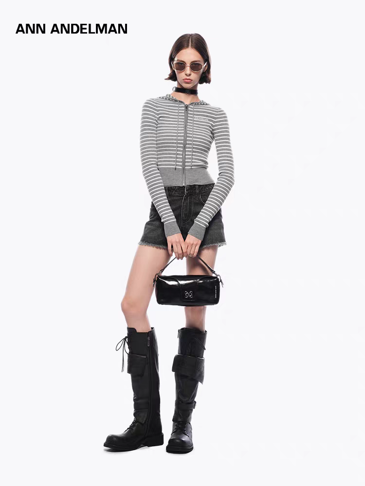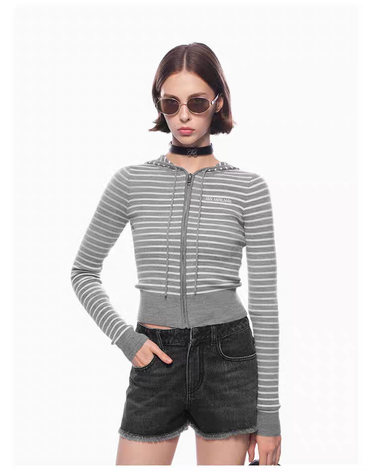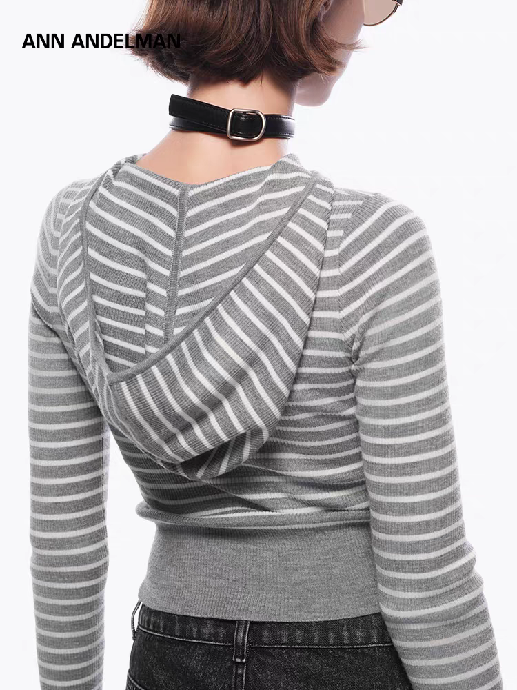ANN ANDELMAN 2510 条纹连帽针织衫 灰