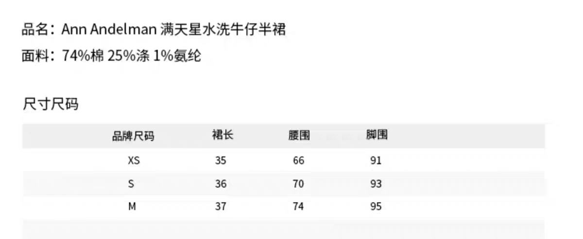 ANN ANDELMAN 2512 满天星水洗牛仔半裙