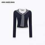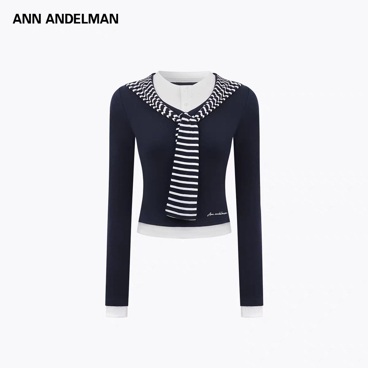 ANN ANDELMAN 2512 针织假两件绑带上衣 藏蓝