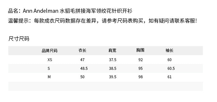 ANN ANDELMAN 2601 水貂毛拼接海军领绞花针织开衫