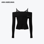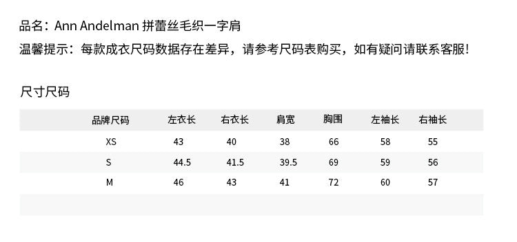 ANN ANDELMAN 2602 拼蕾丝毛织一字肩