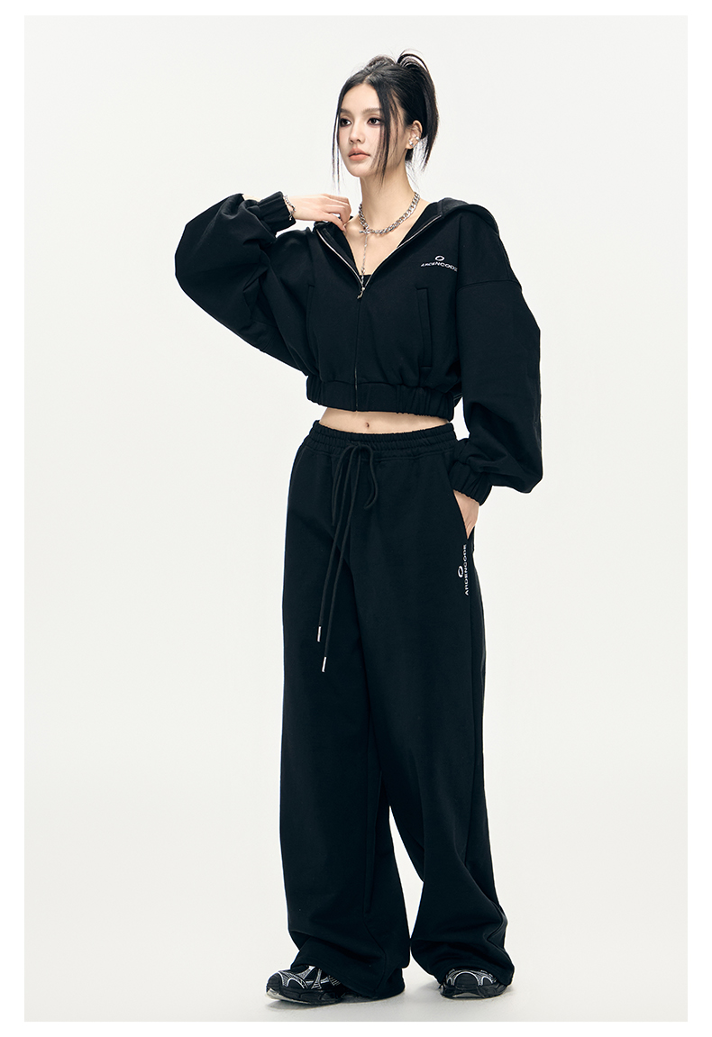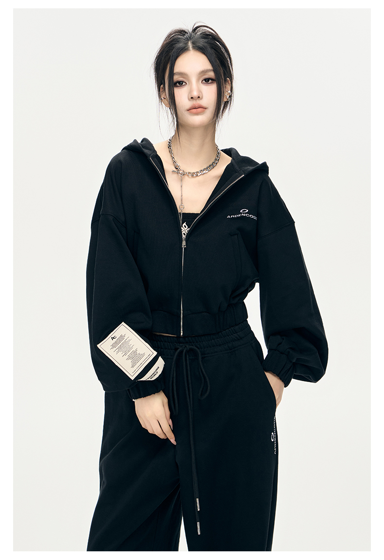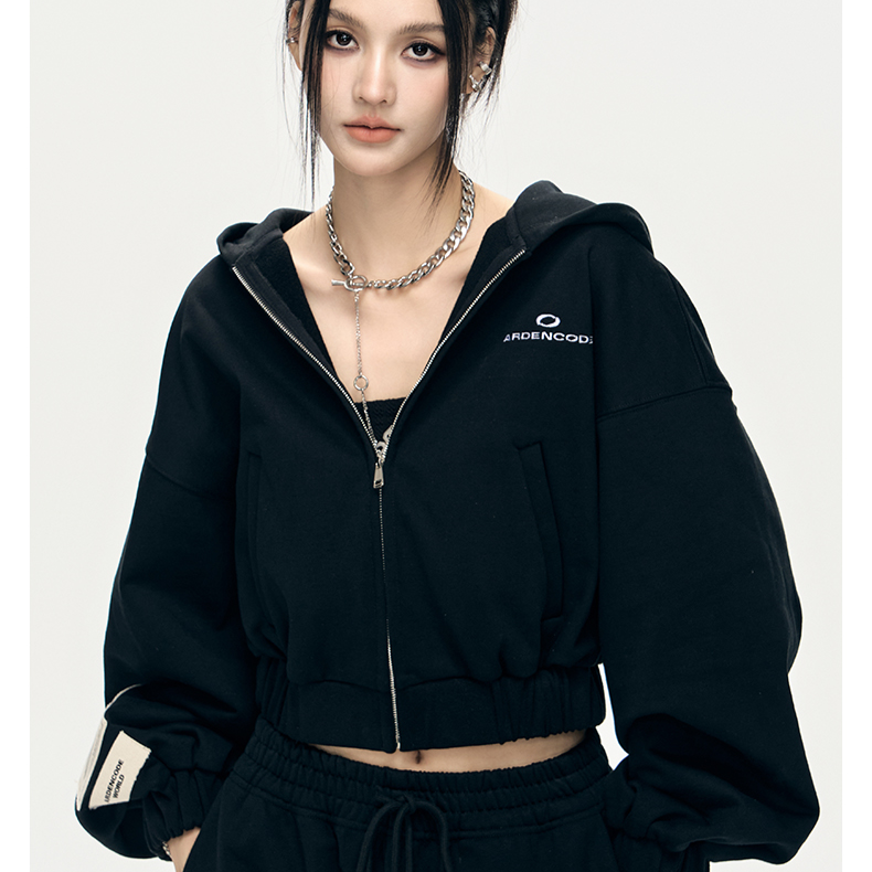 ARDENCODE | 字母logo刺绣宽松卫衣拉链帽衫 黑