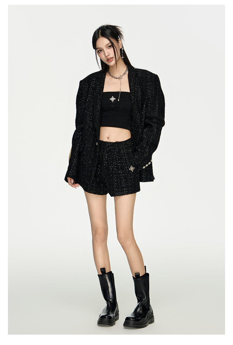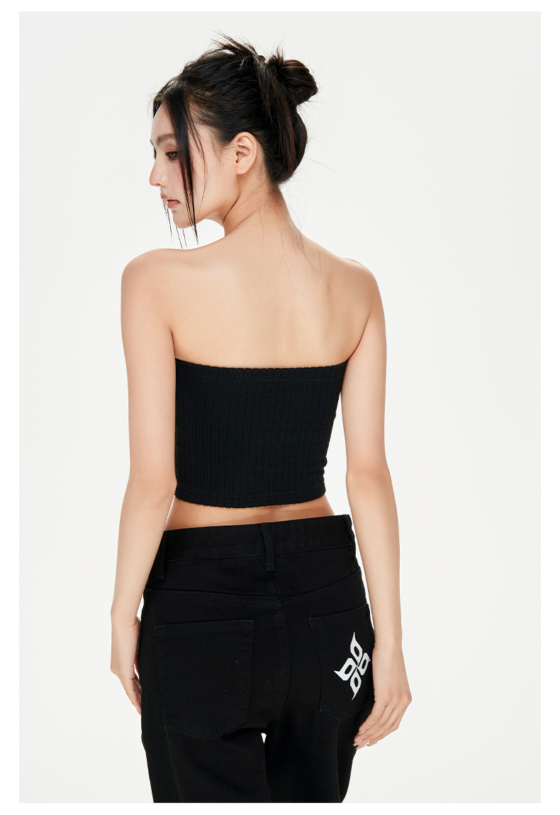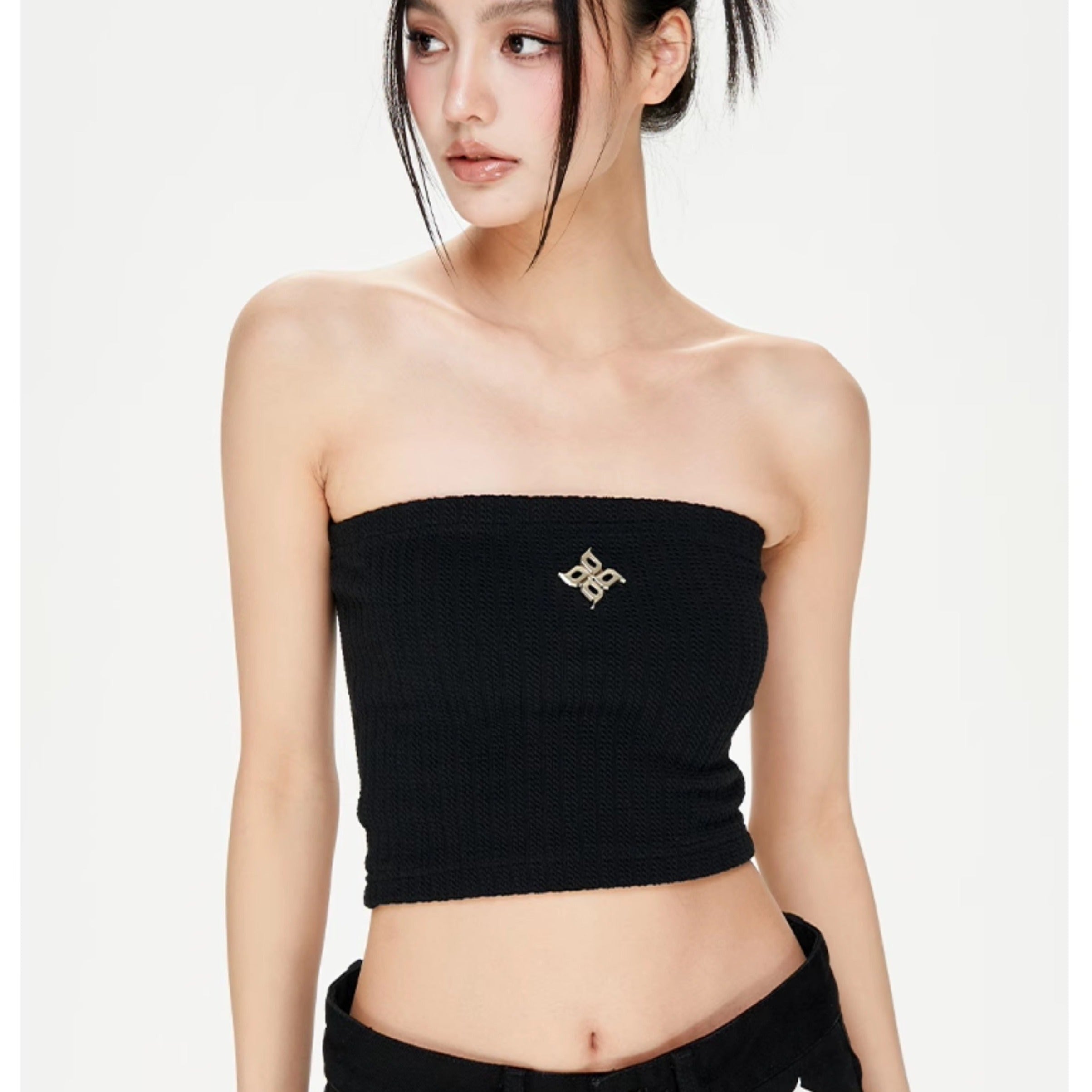 ARDENCODE W 印记 | 十字花铁标紧身弹力针织抹胸 黑