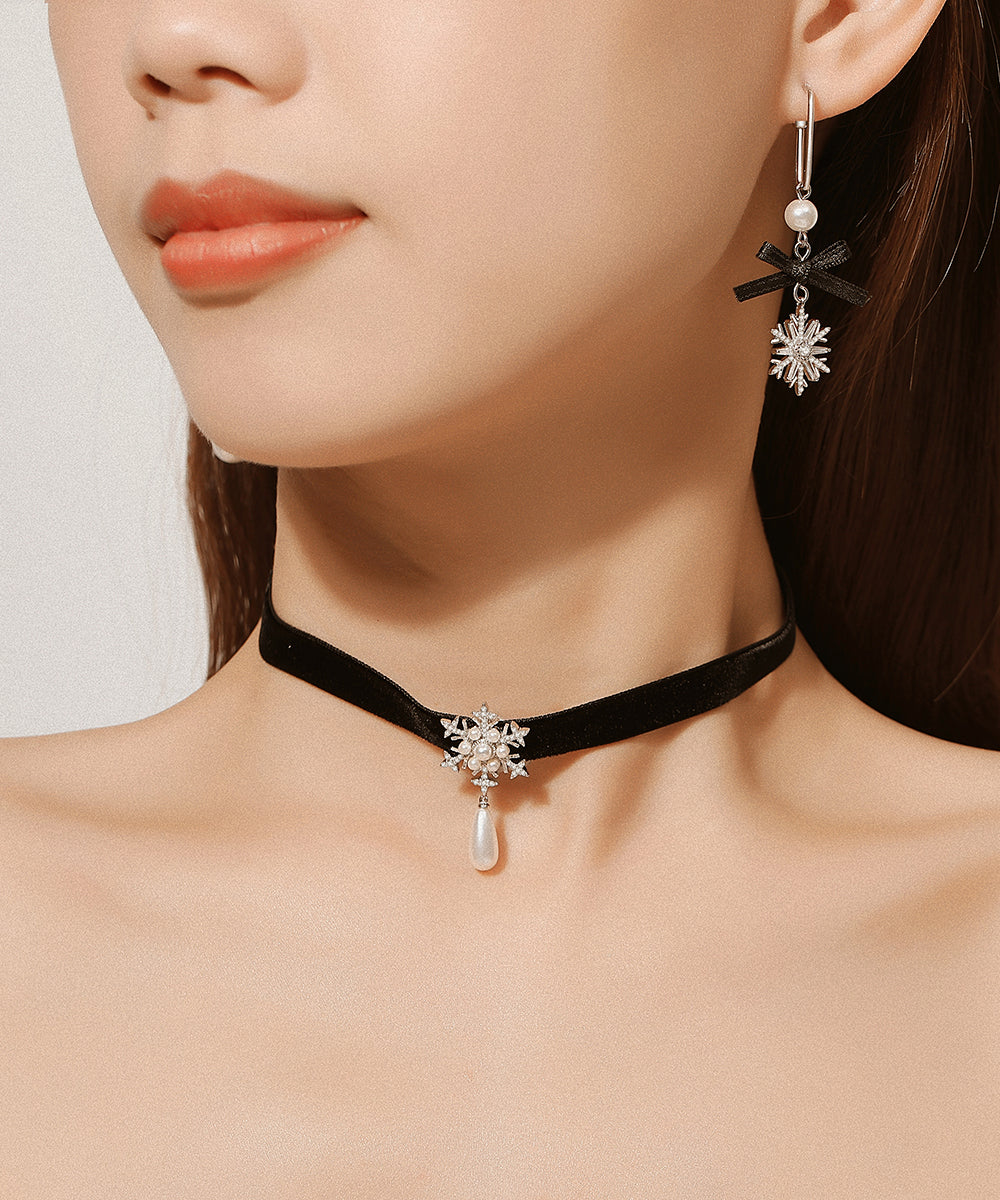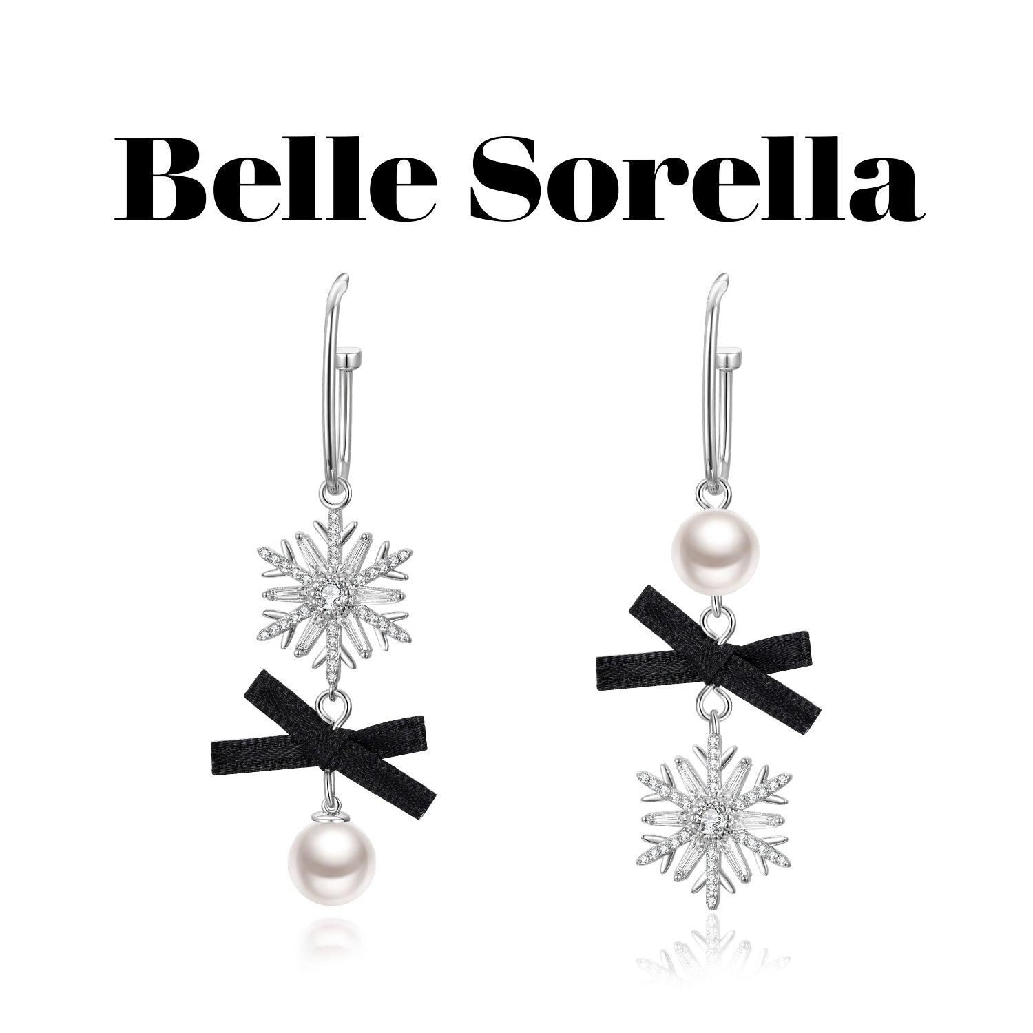 Belle Sorella SS2309 冰凝雪花珍珠蝴蝶结丝绒耳环