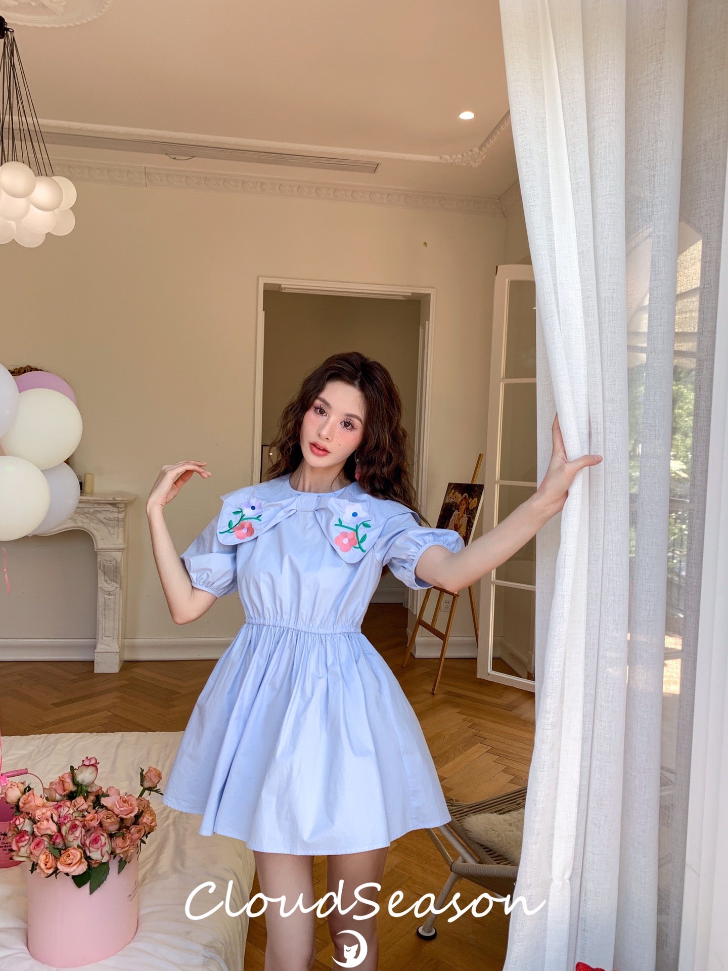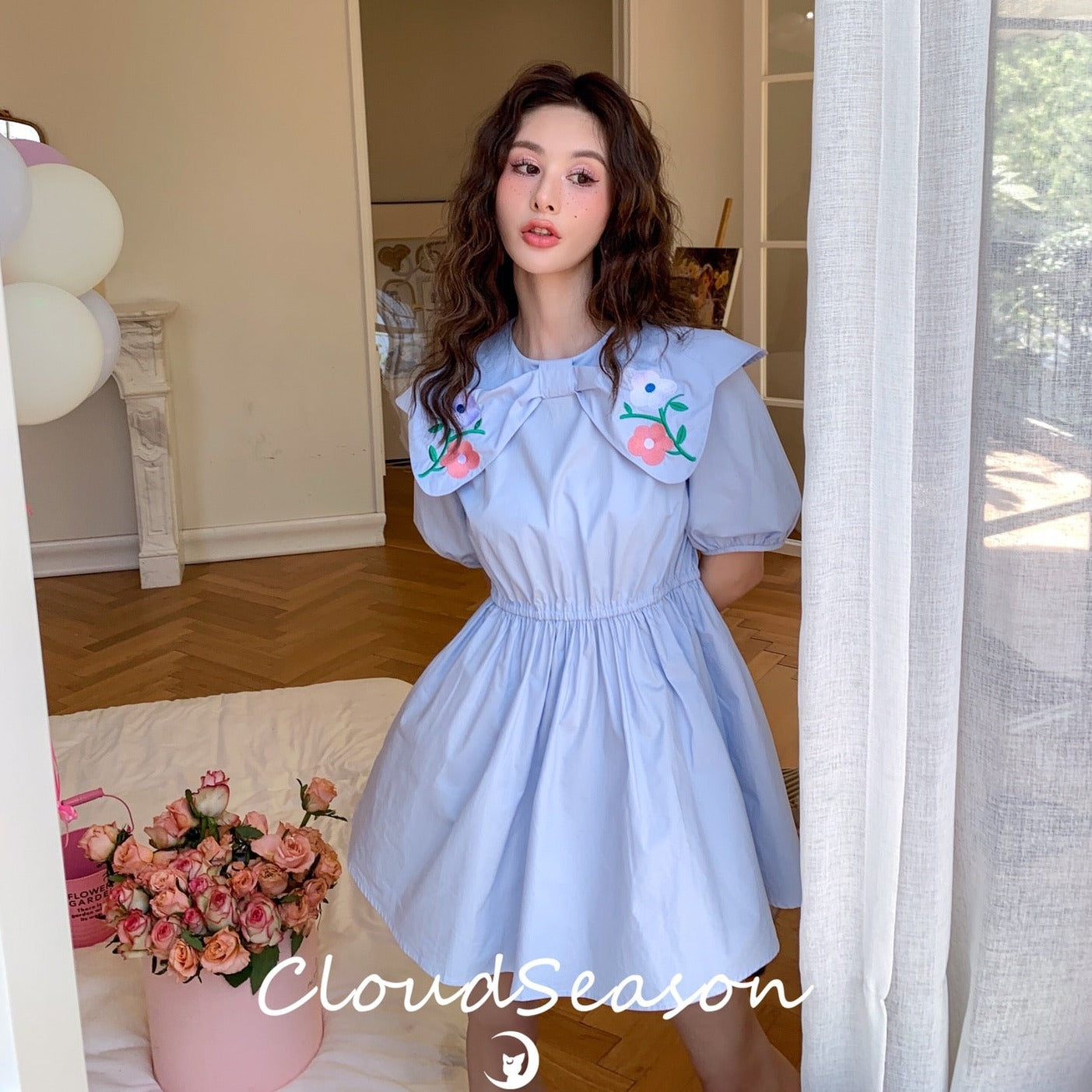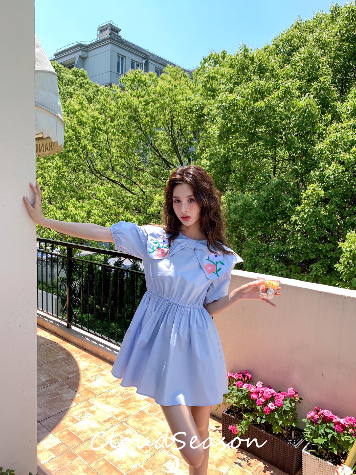 CLOUDSEASON 刺绣花朵泡泡袖