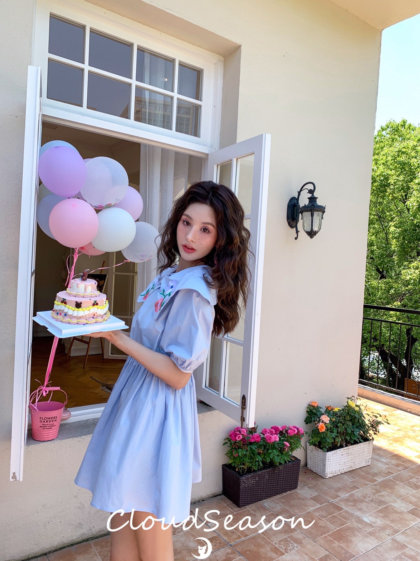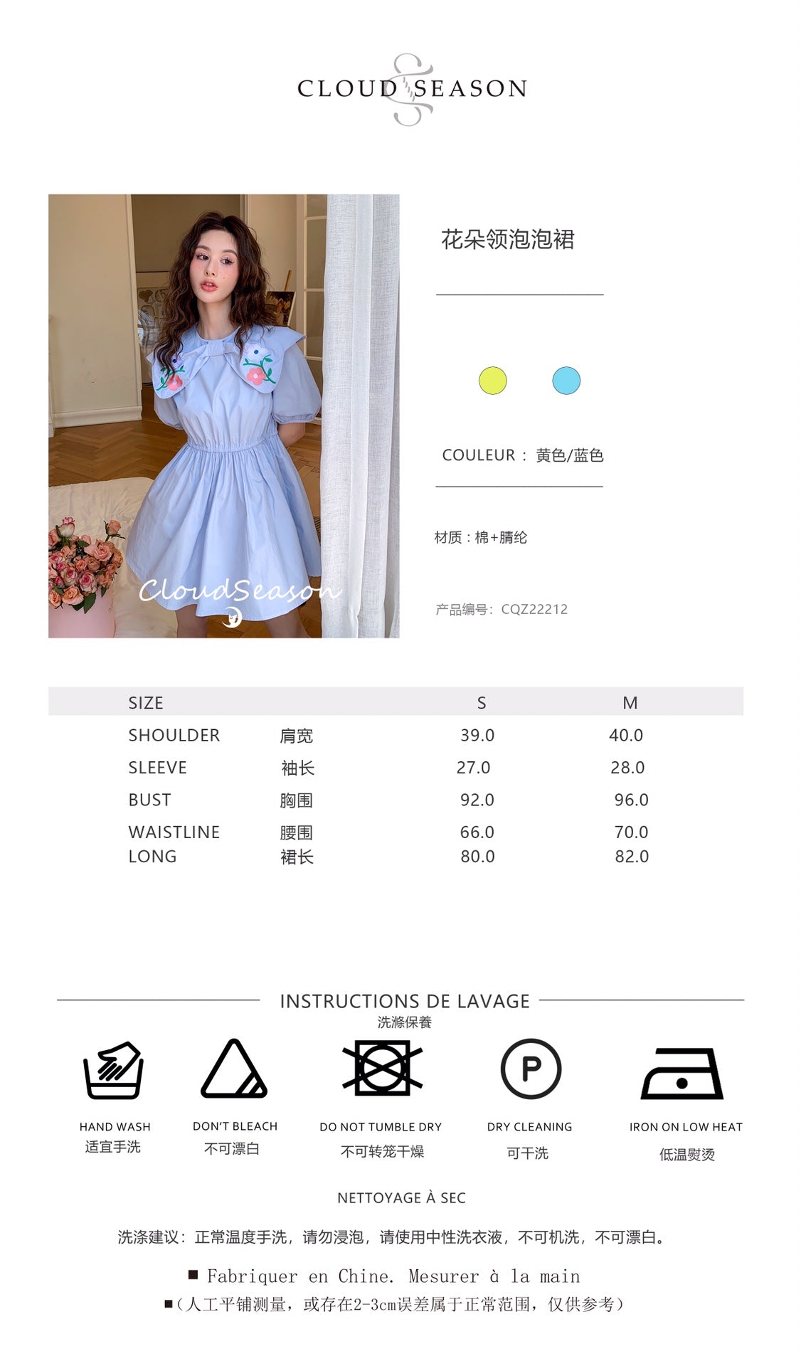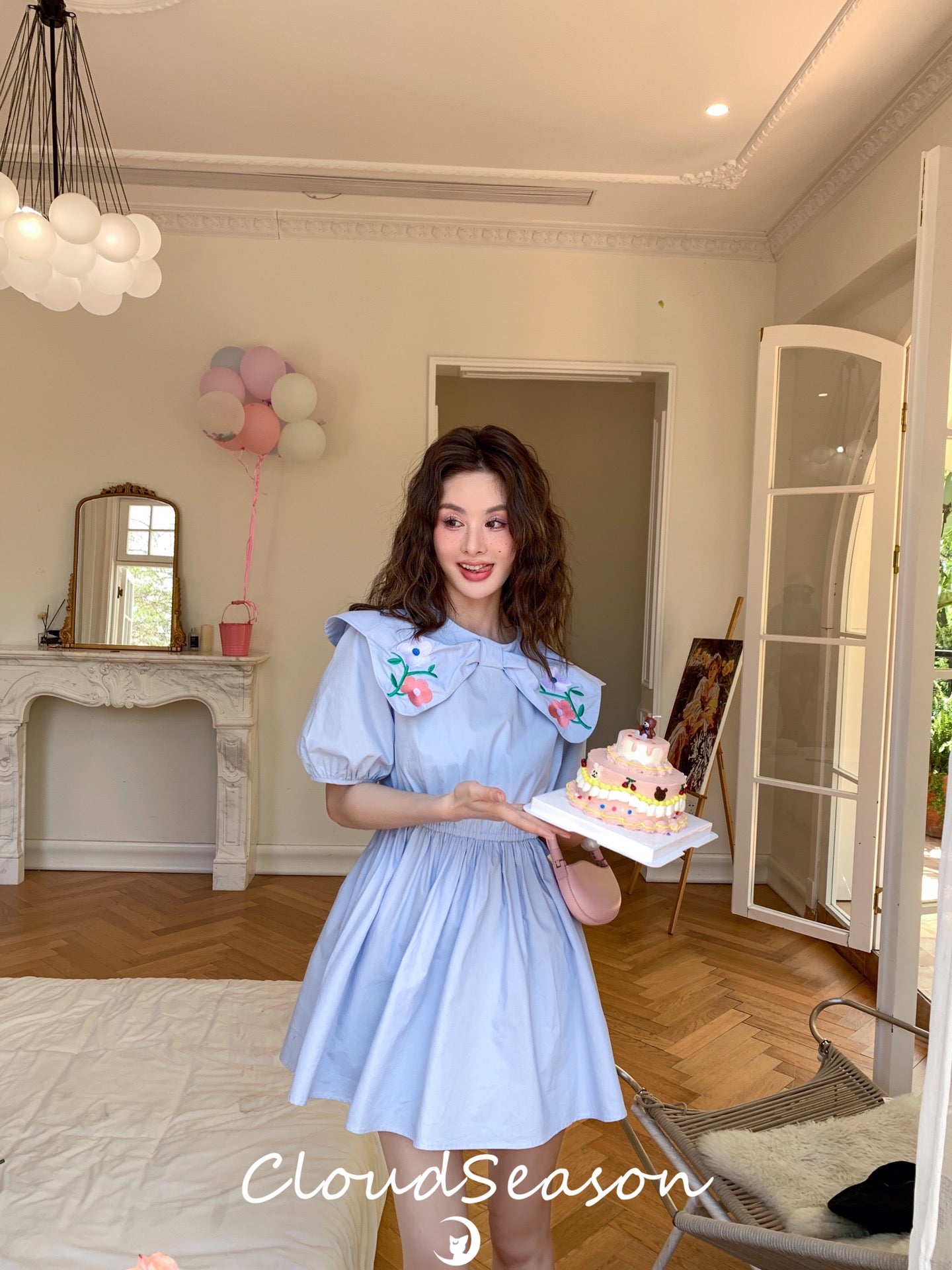CLOUDSEASON 刺绣花朵泡泡袖