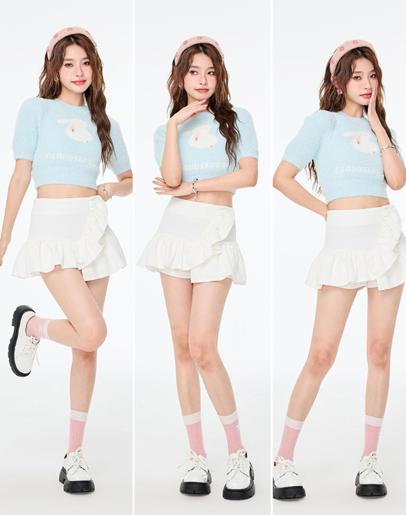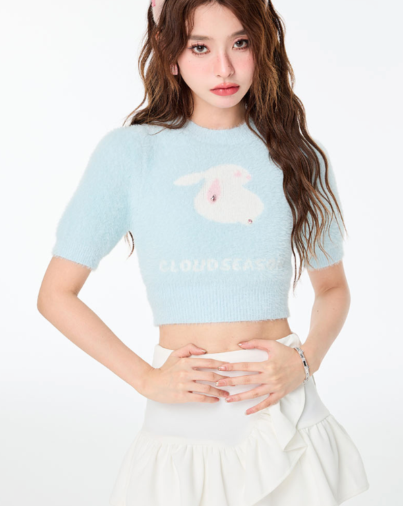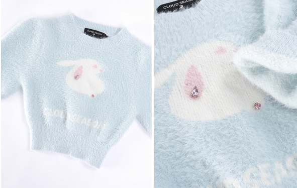 CLOUDSEASON 卡通字母短毛衣 蓝