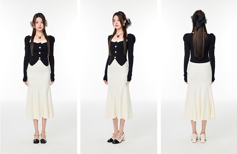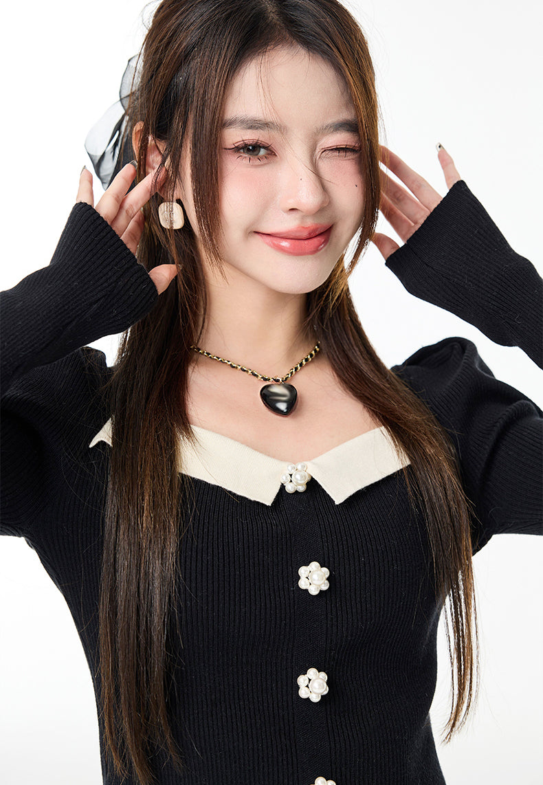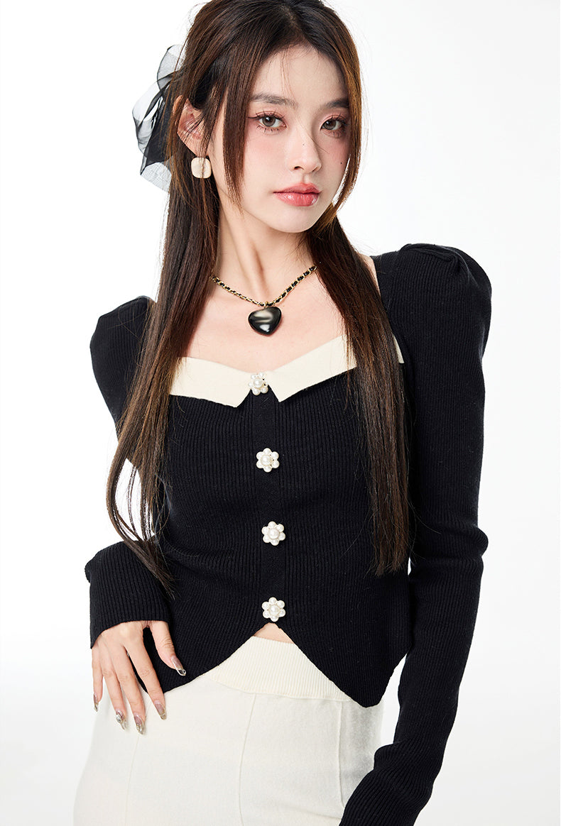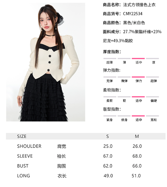 CLOUDSEASON 法式气质复古撞色打底衫 黑