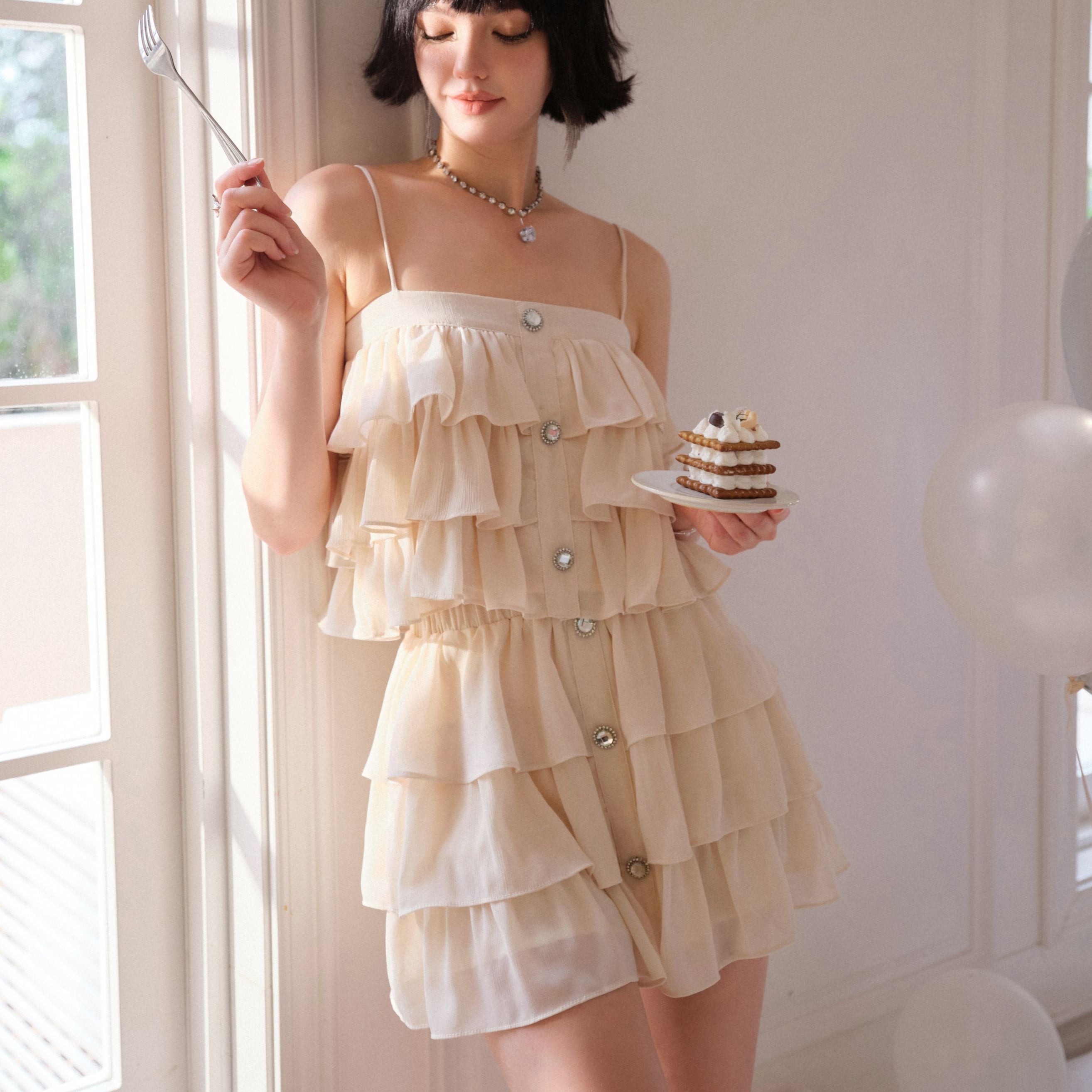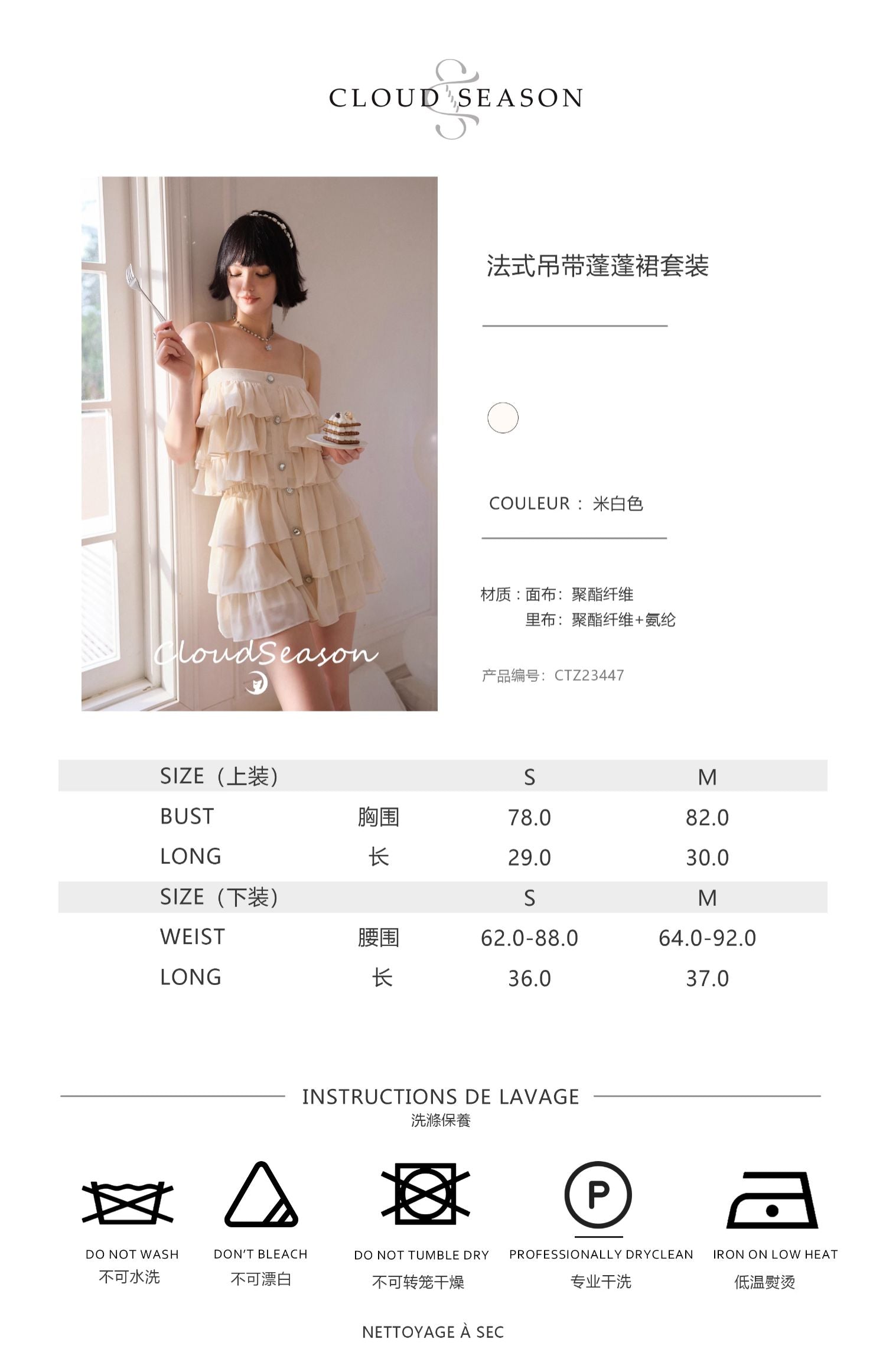 CLOUDSEASON SS2308 法式吊带蓬蓬裙套装