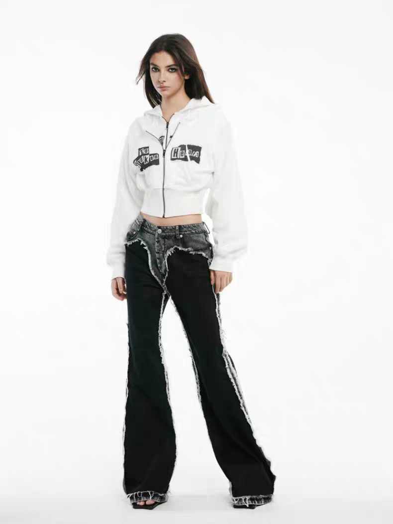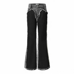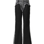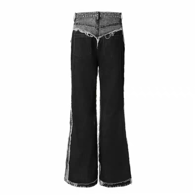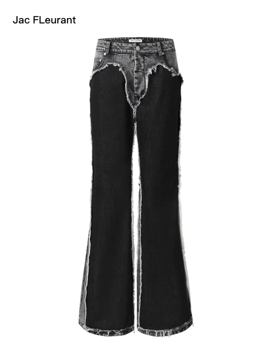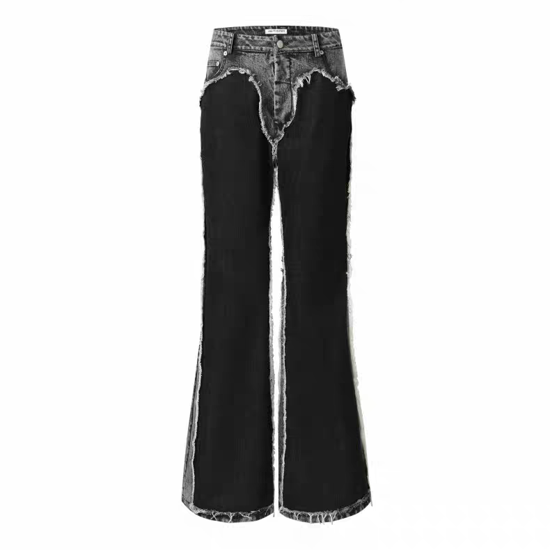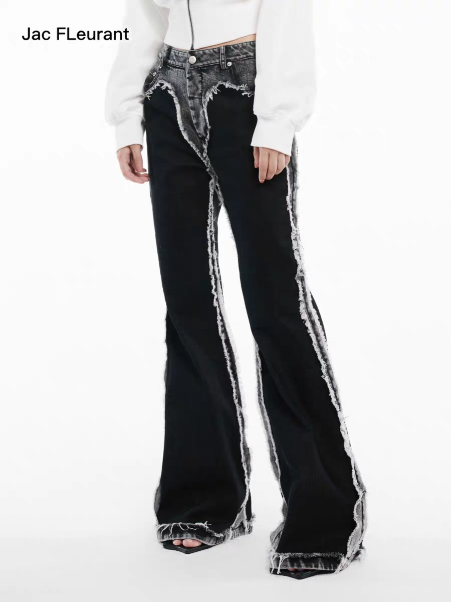 DIANA VEVINA 黑色毛边拼接牛仔裤