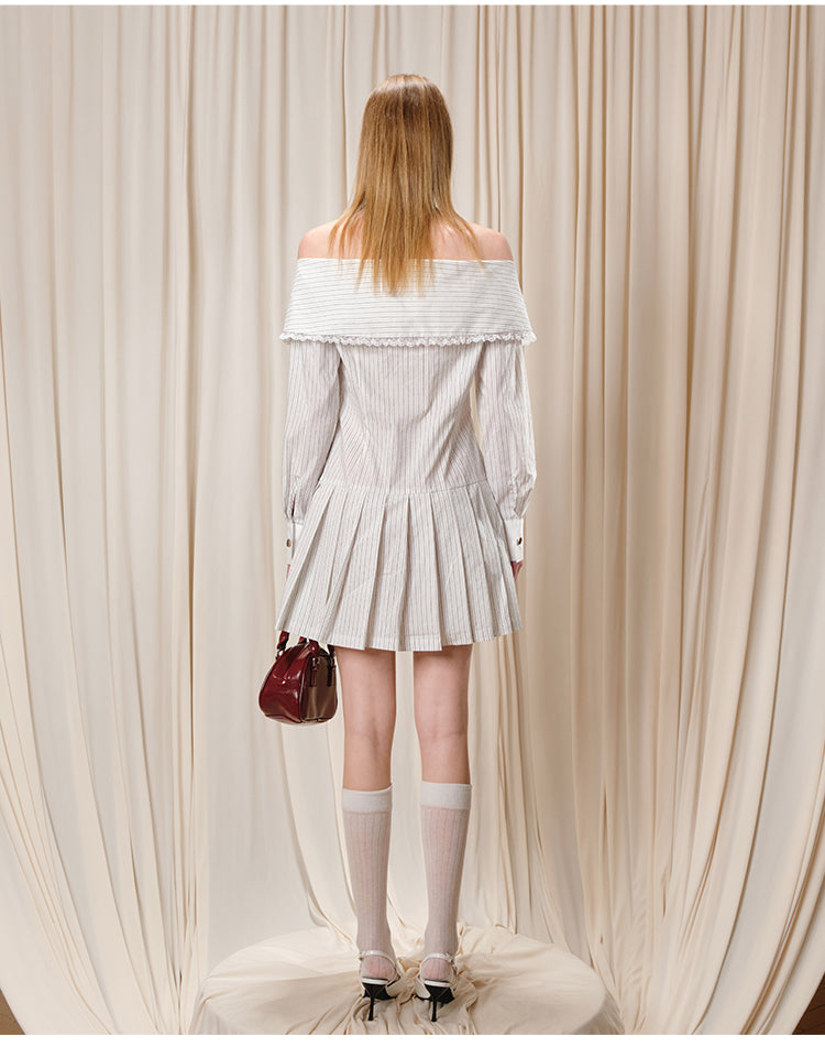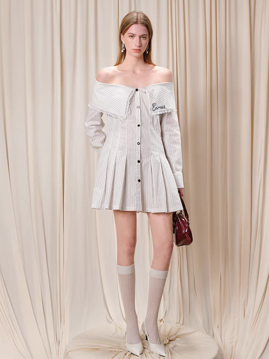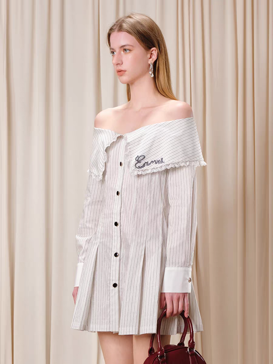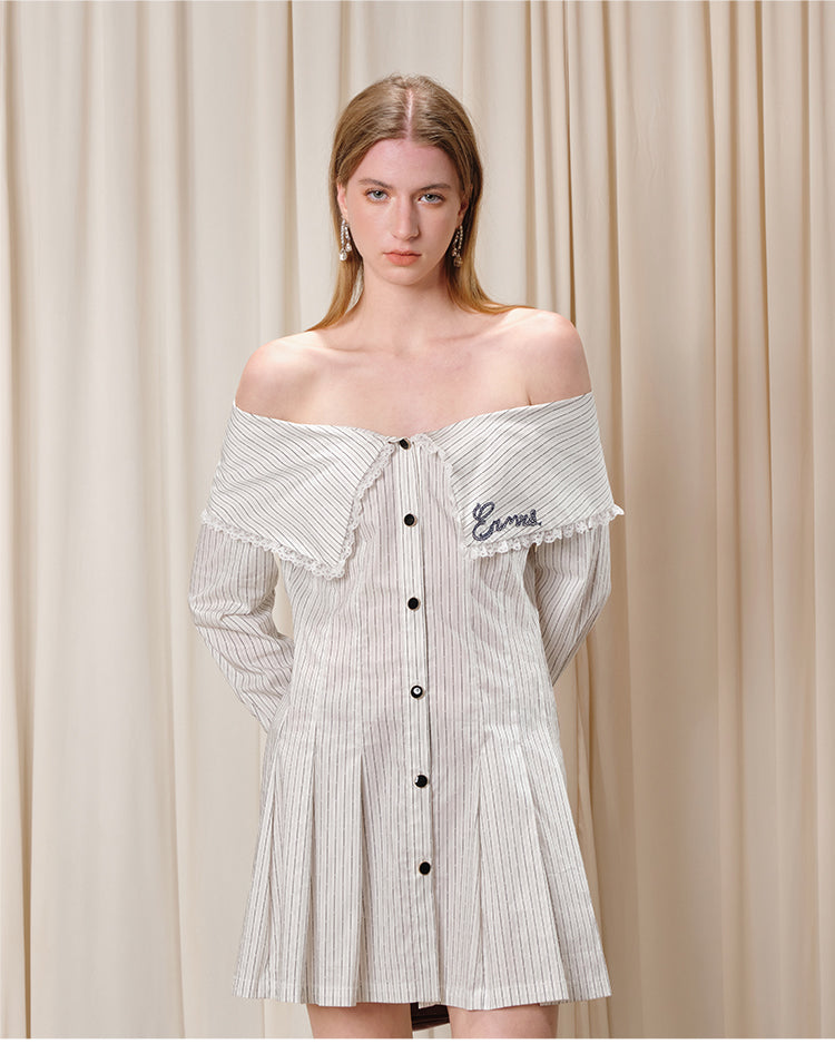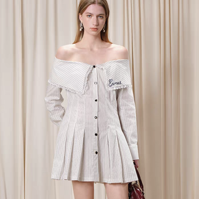 EIMISMOSOL 2505 条纹长袖娃娃领连衣裙