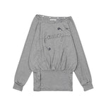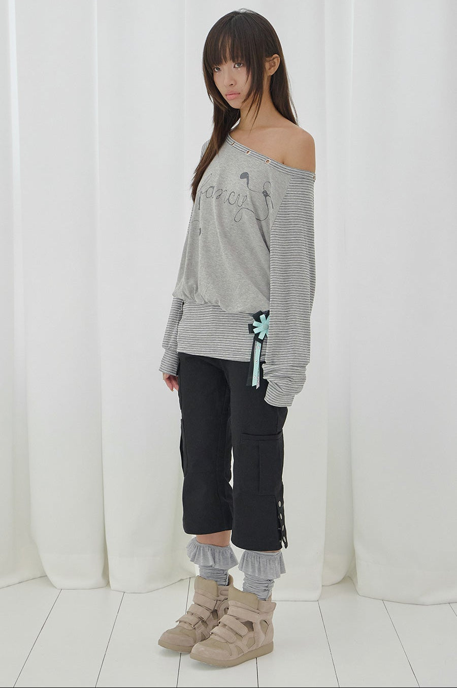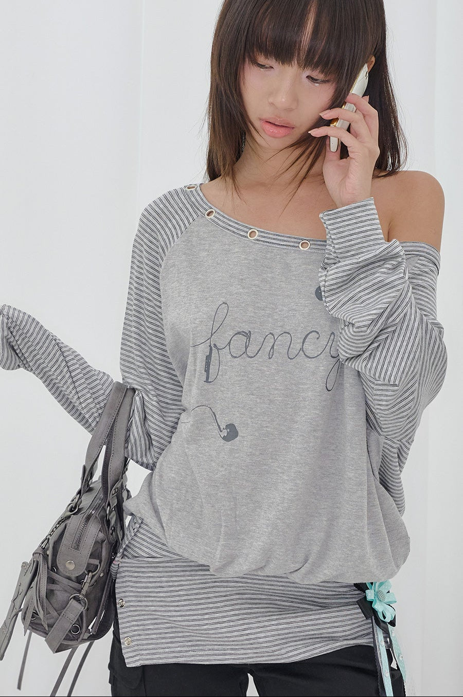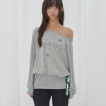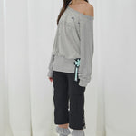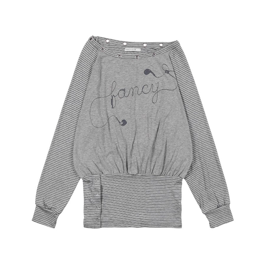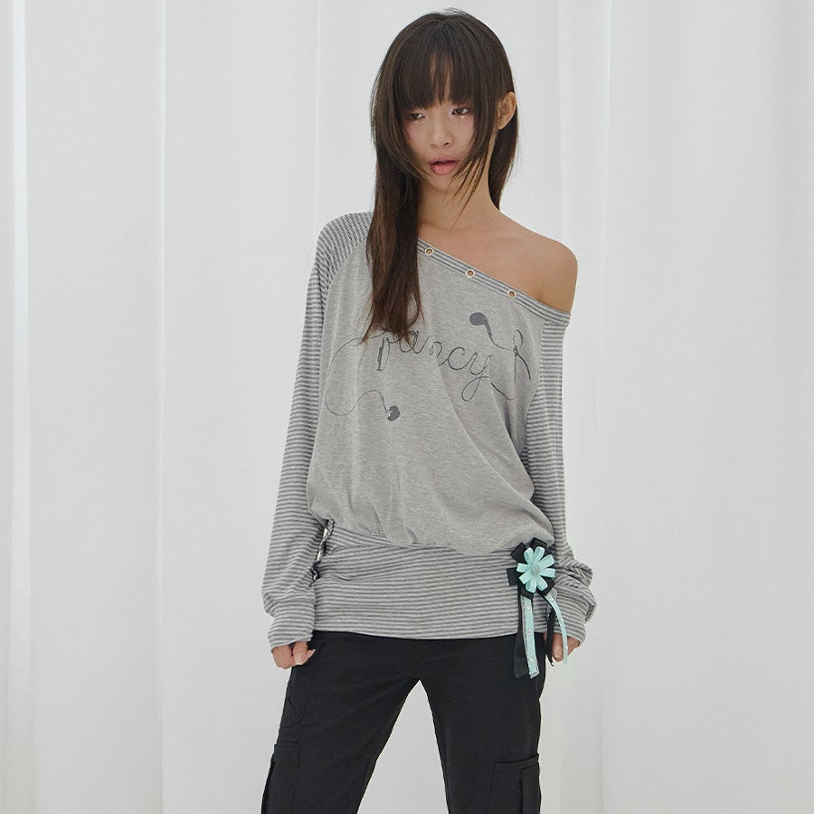 FANCY CLUB 2603 Drawing Stripe Off-Shoulder GRAY