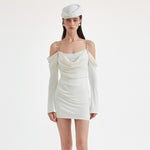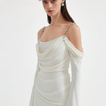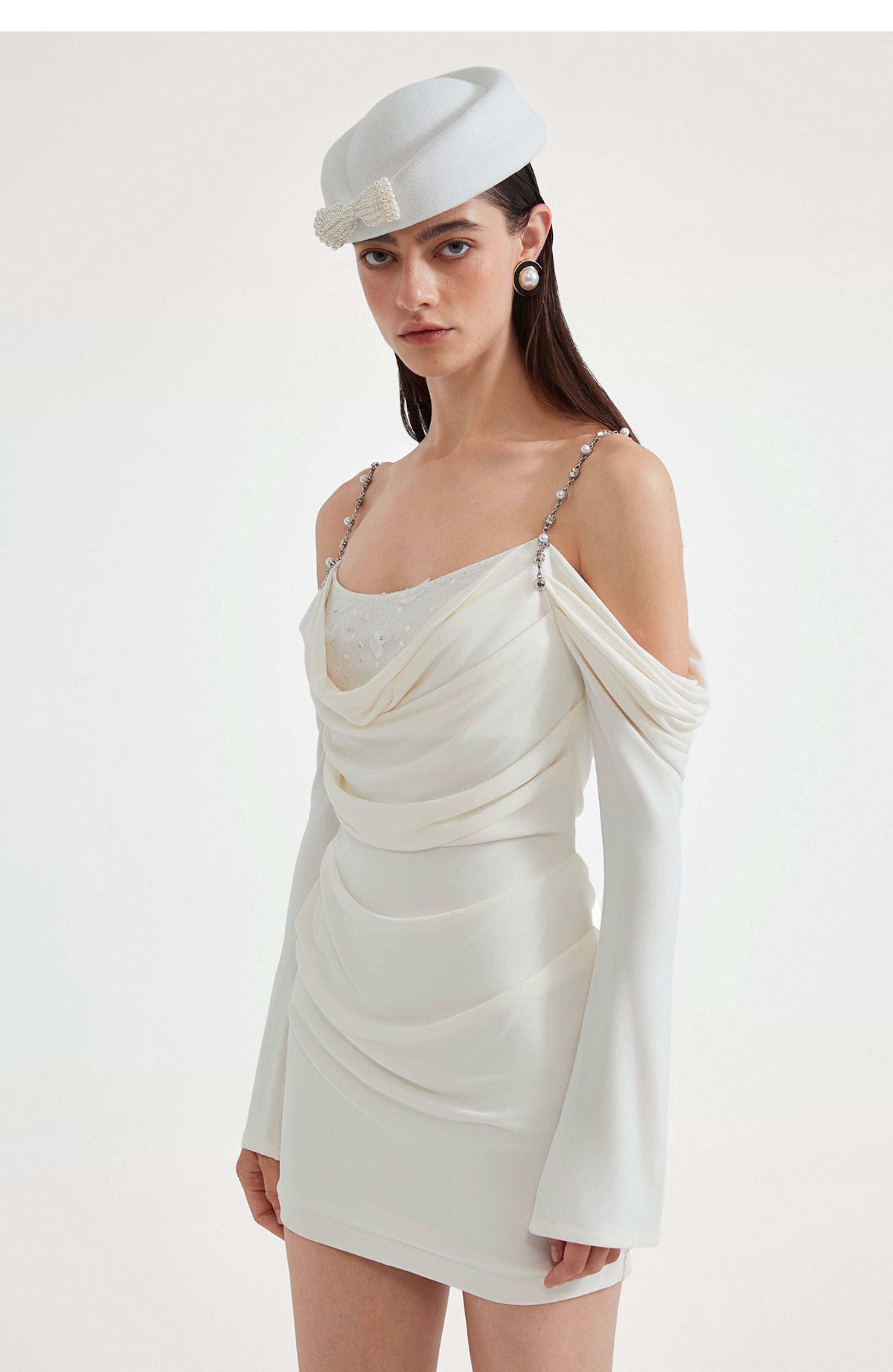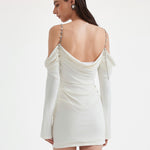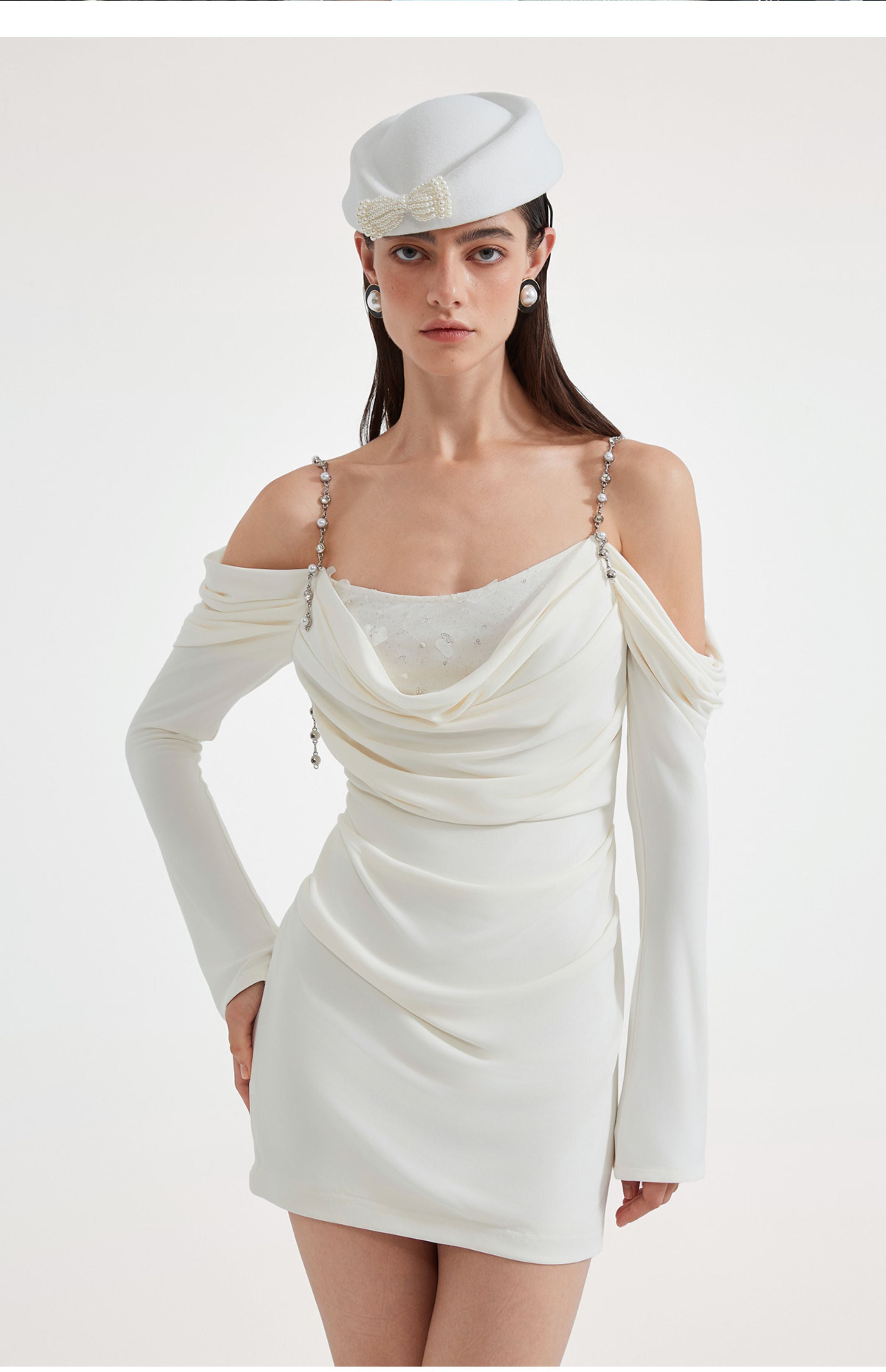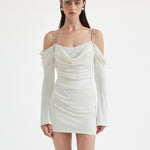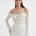 KINGWEN 2509 金属肩带长袖褶皱修身连衣裙