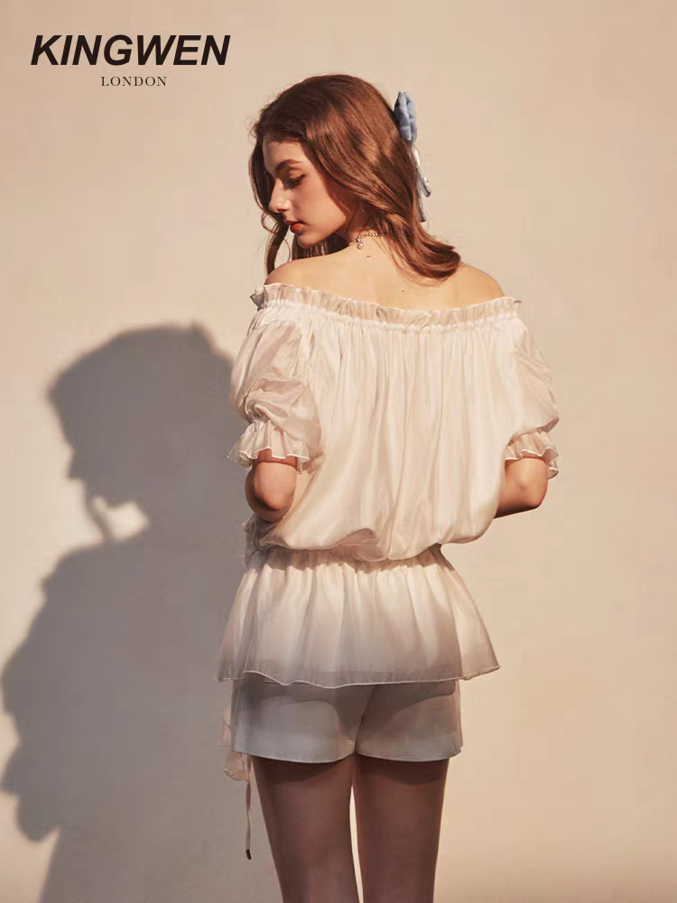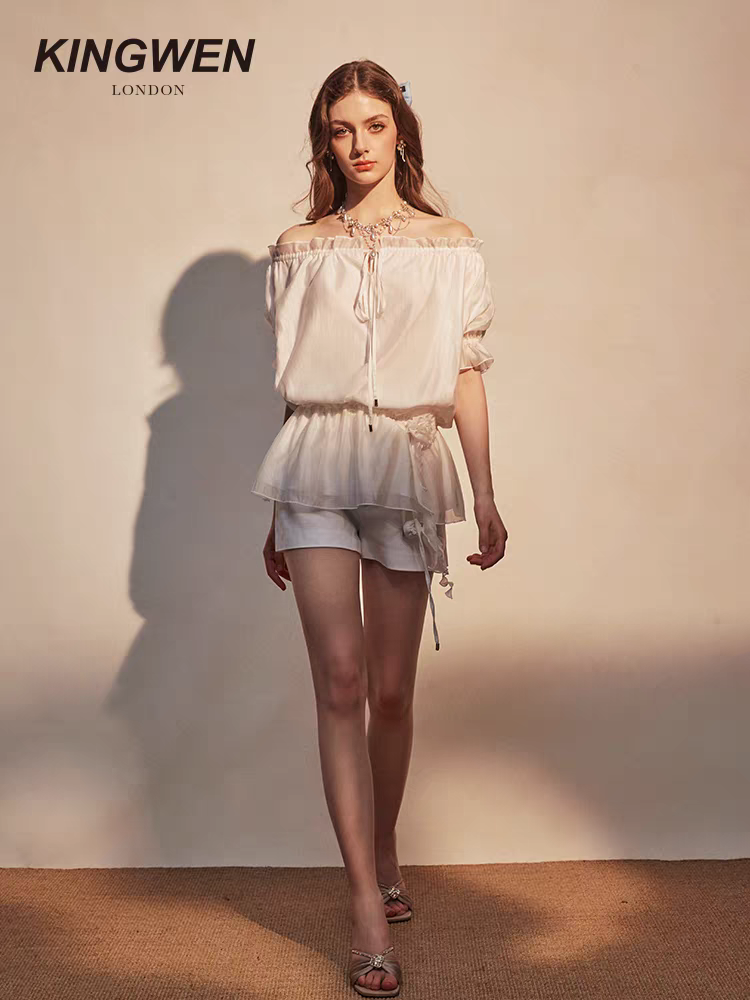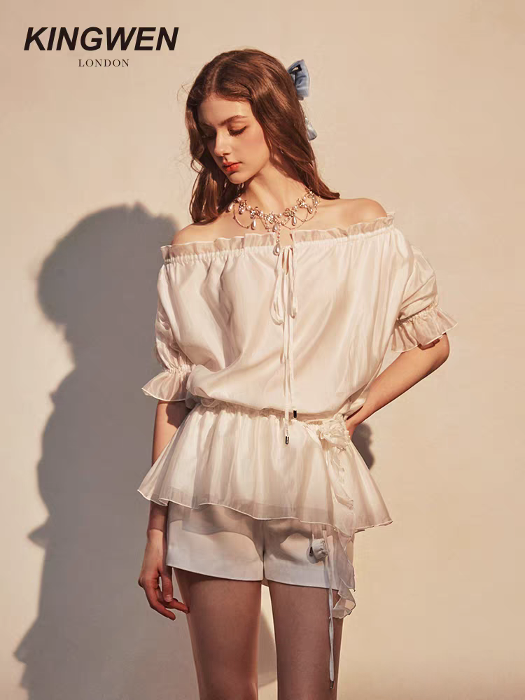 KINGWEN 2509 白色一字肩短袖