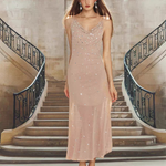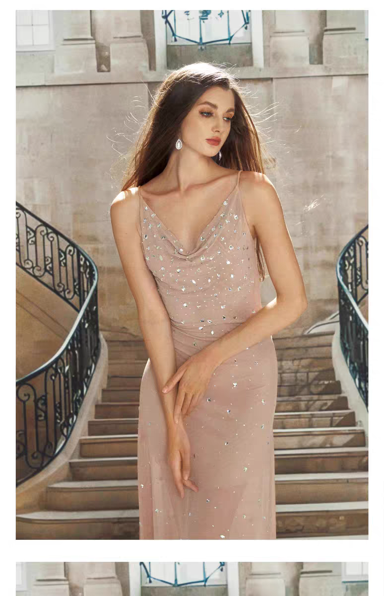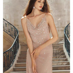 KINGWEN 2510 烫钻荡领连衣裙 裸色