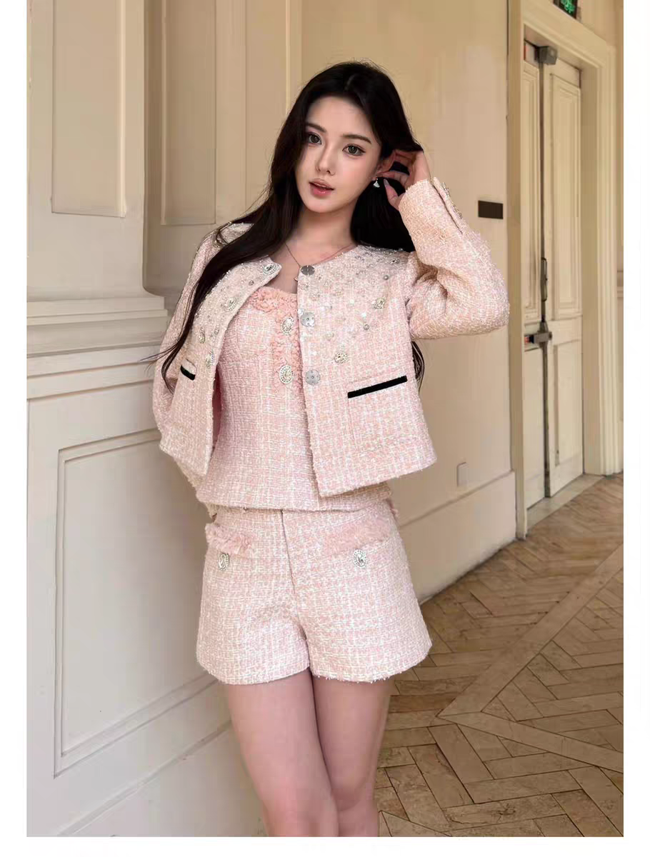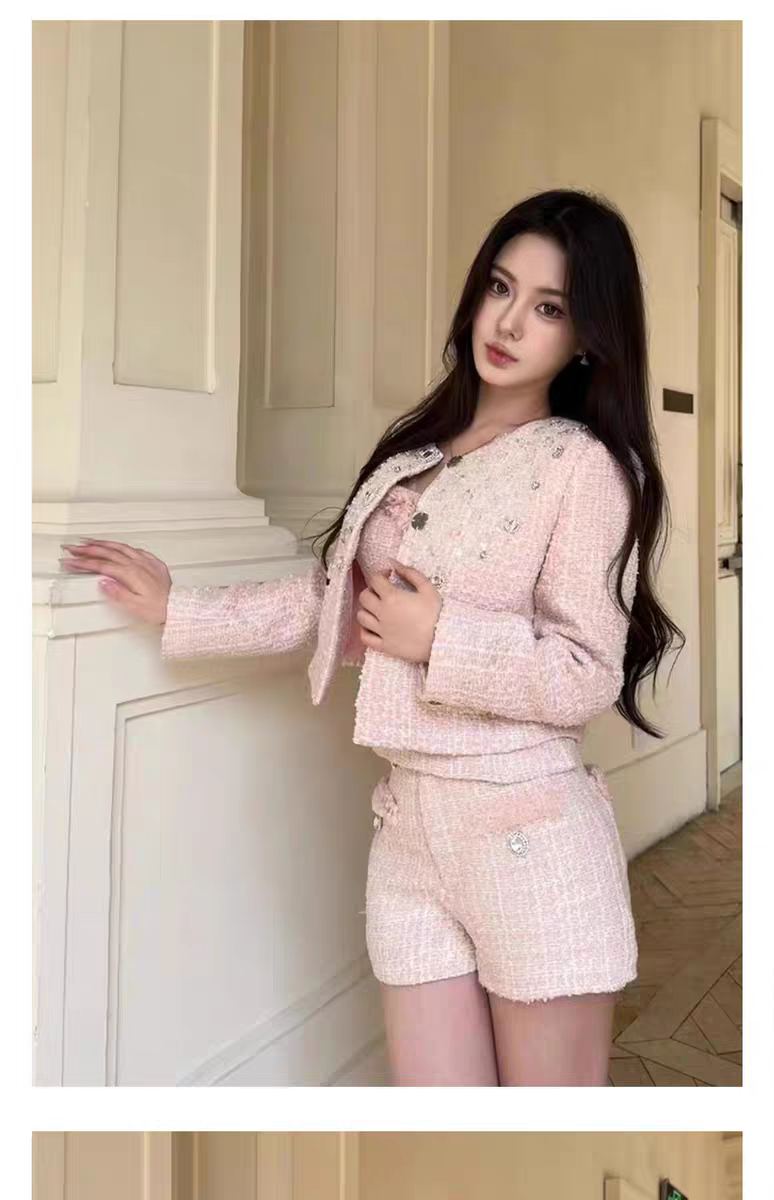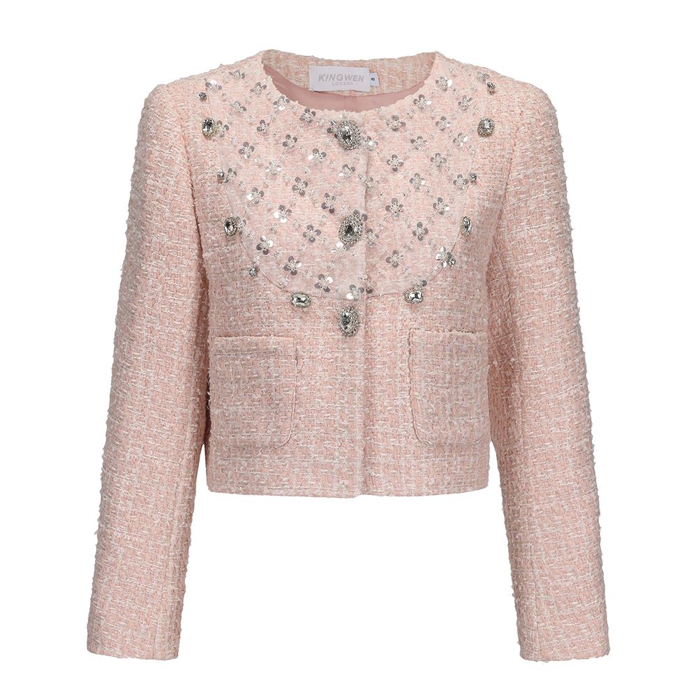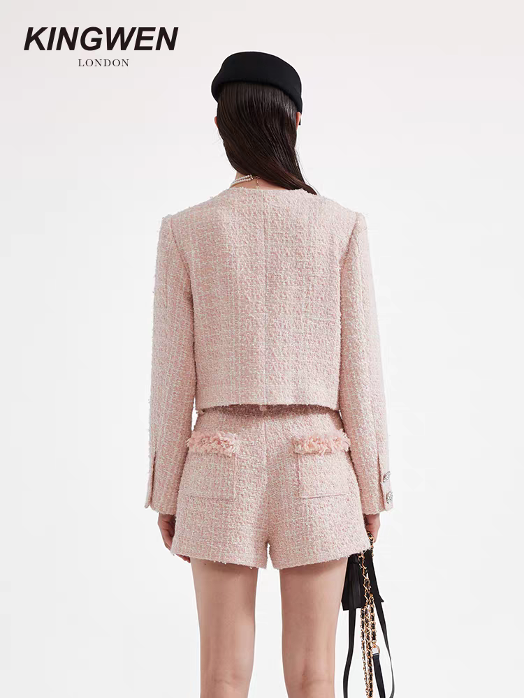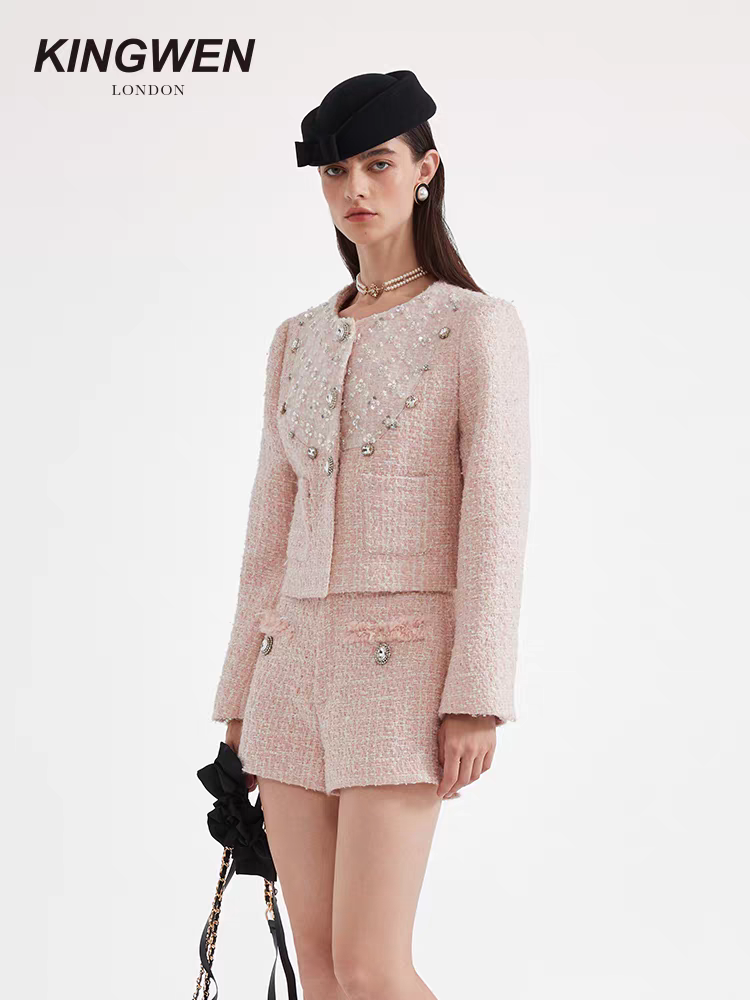 KINGWEN 2510 编织网纱珠钻外套+编织拼接短裤
