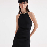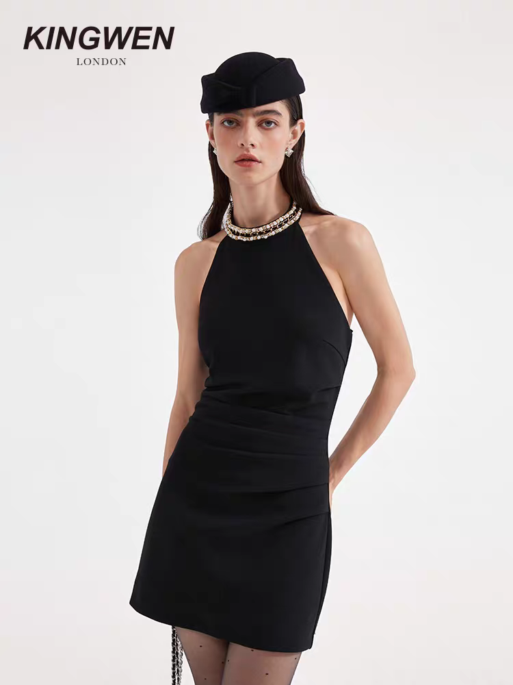KINGWEN 2511 挂脖钉珠褶皱裙