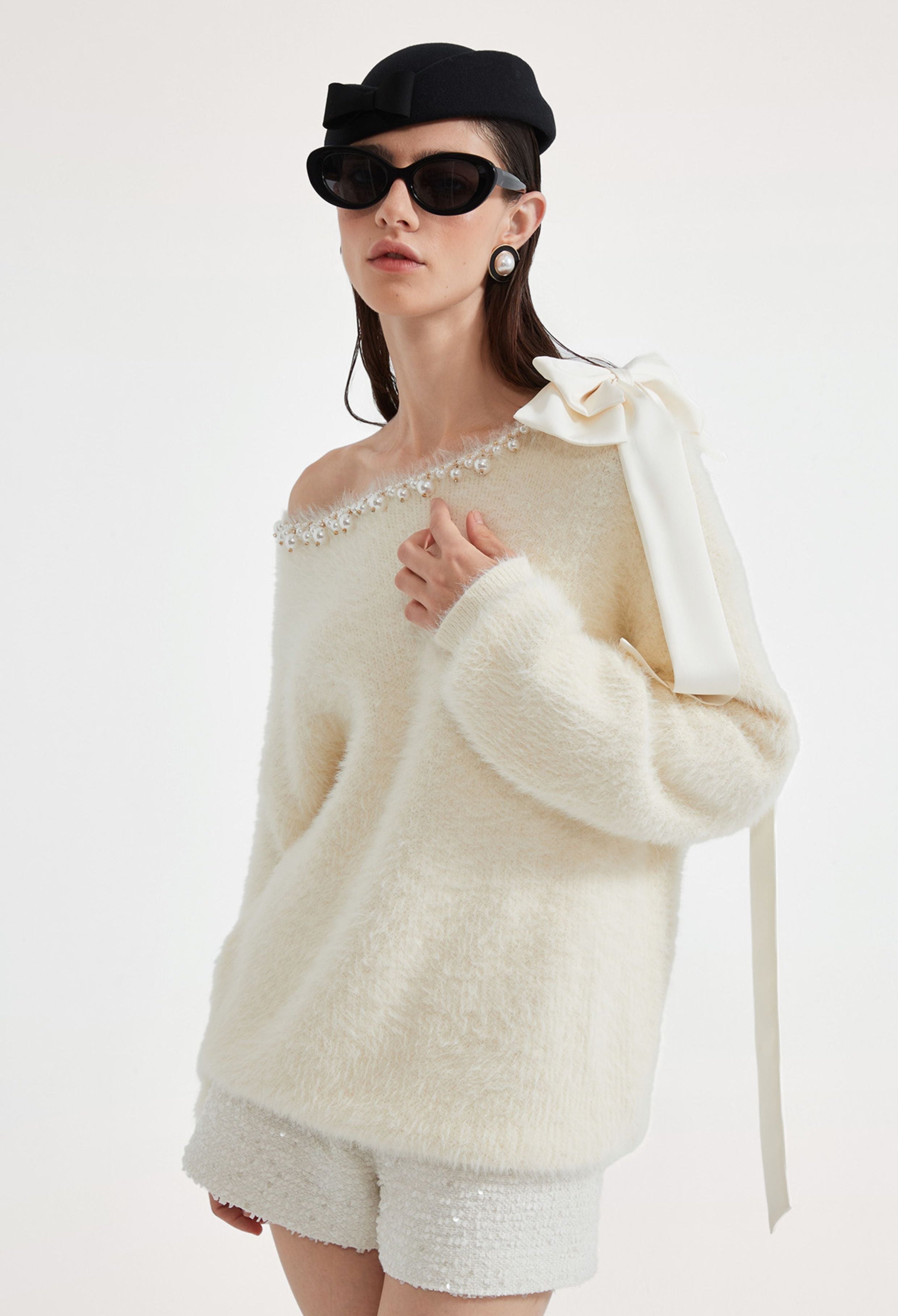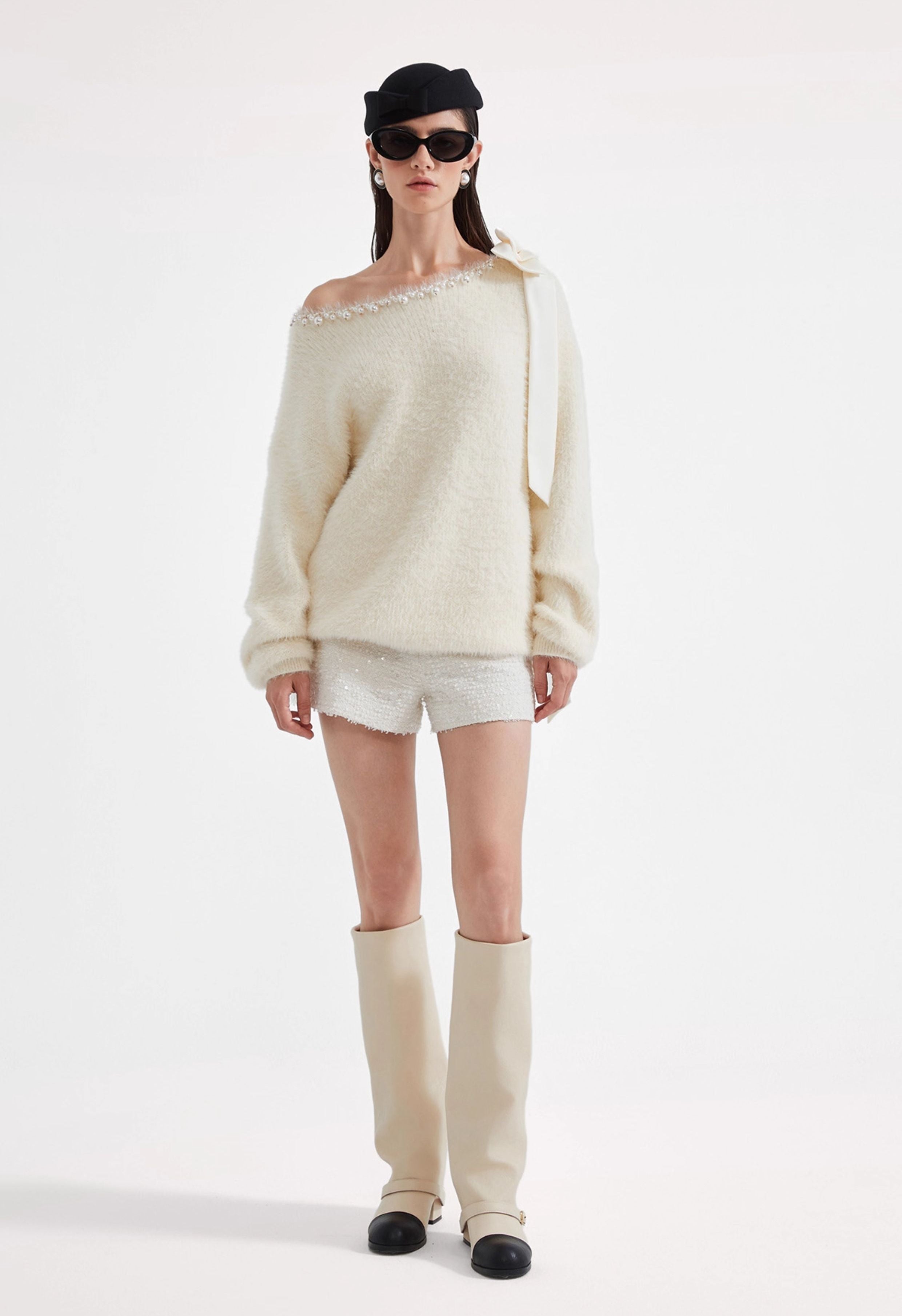 KINGWEN 2512 斜肩钉珠毛衣