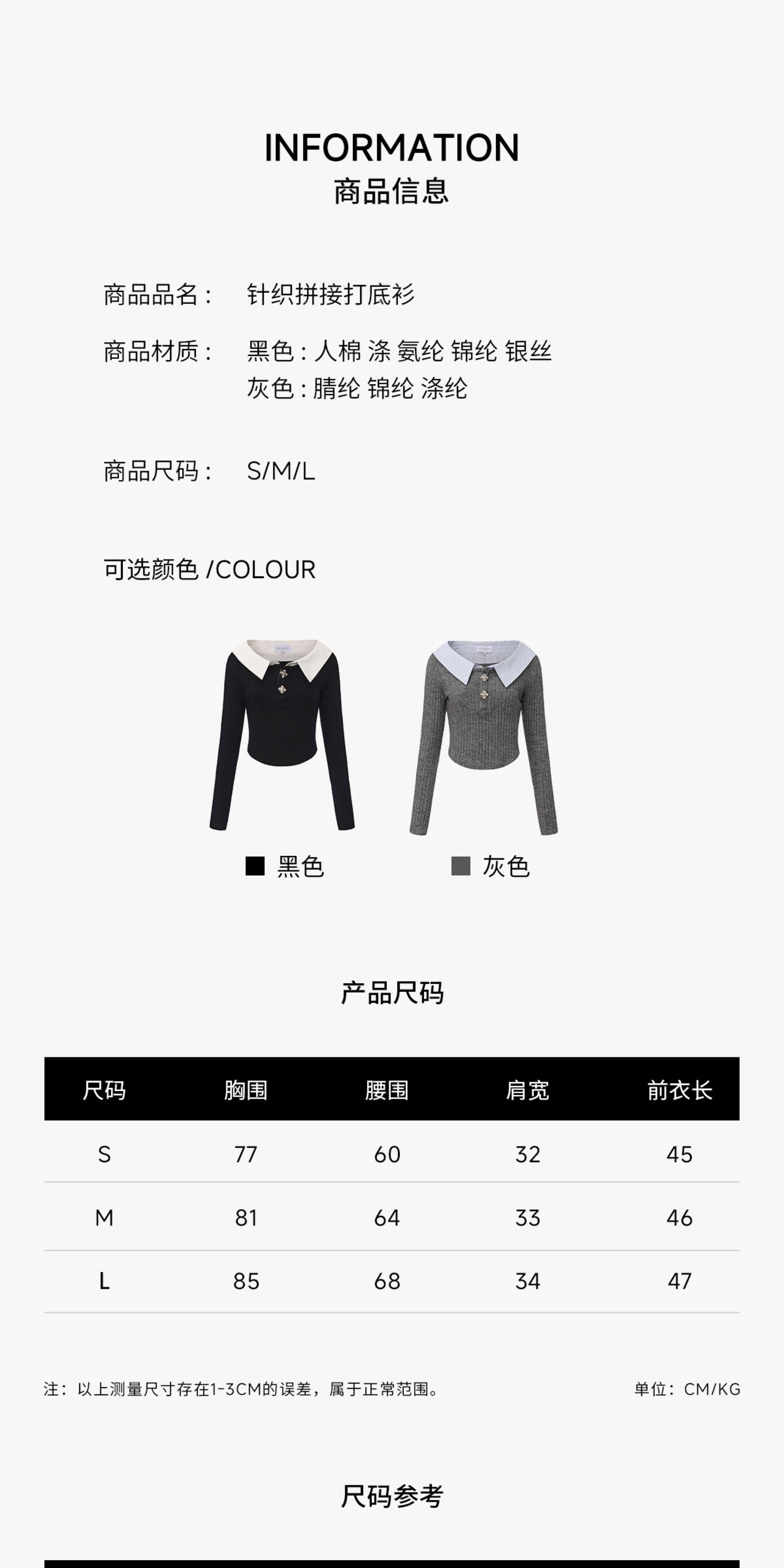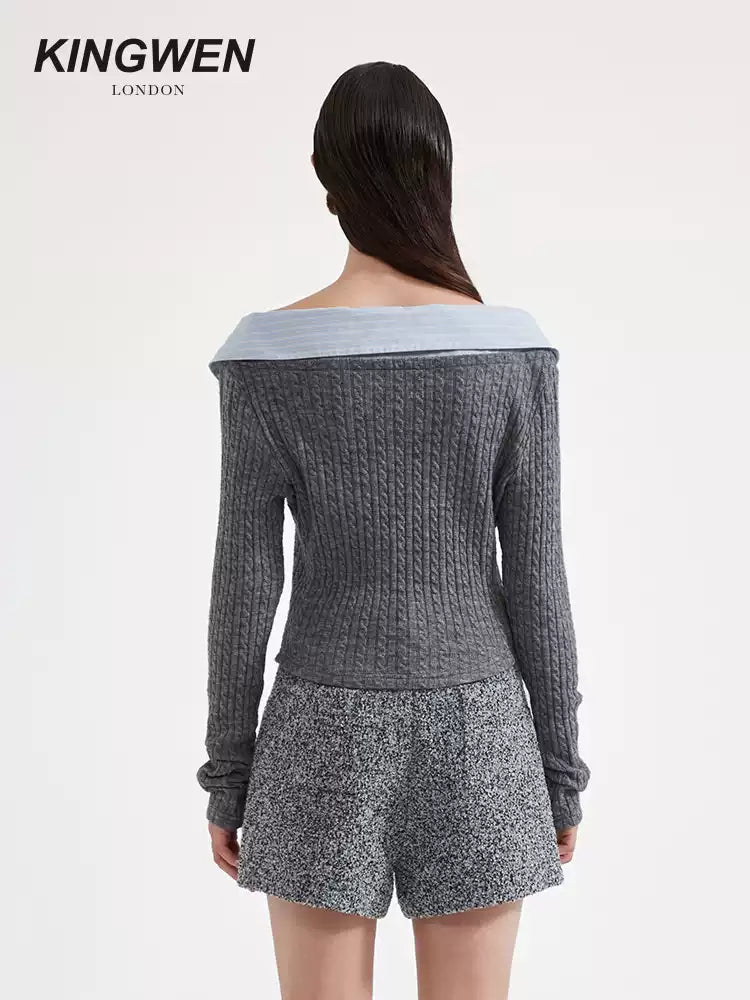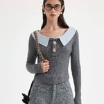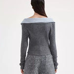 KINGWEN 2512 灰色拼接针织打底衫