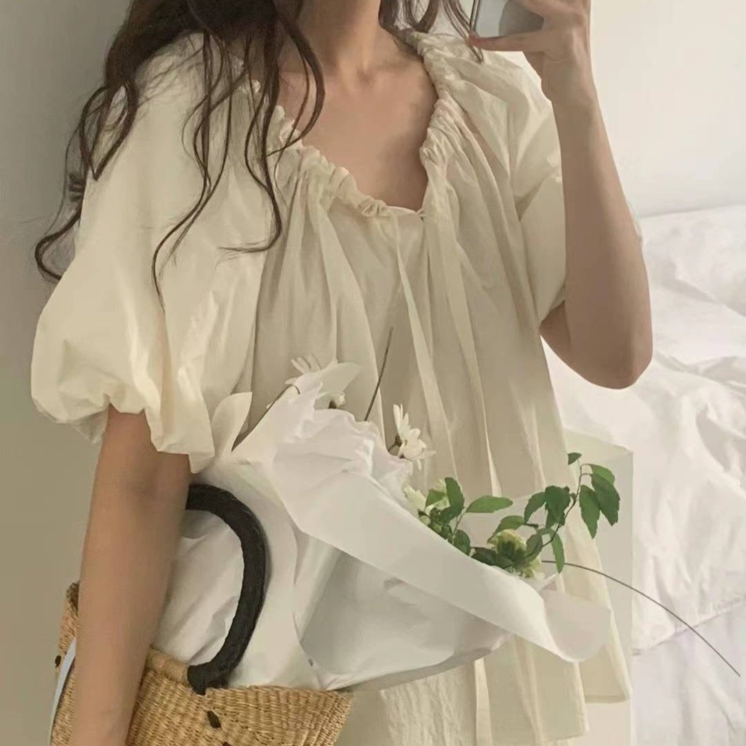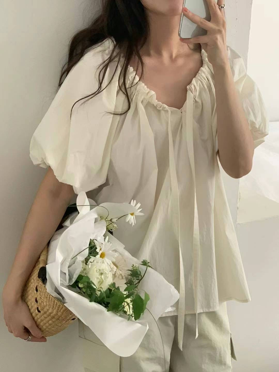 KOREAN COLLECTION 2408 抽绳系带泡泡袖上衣