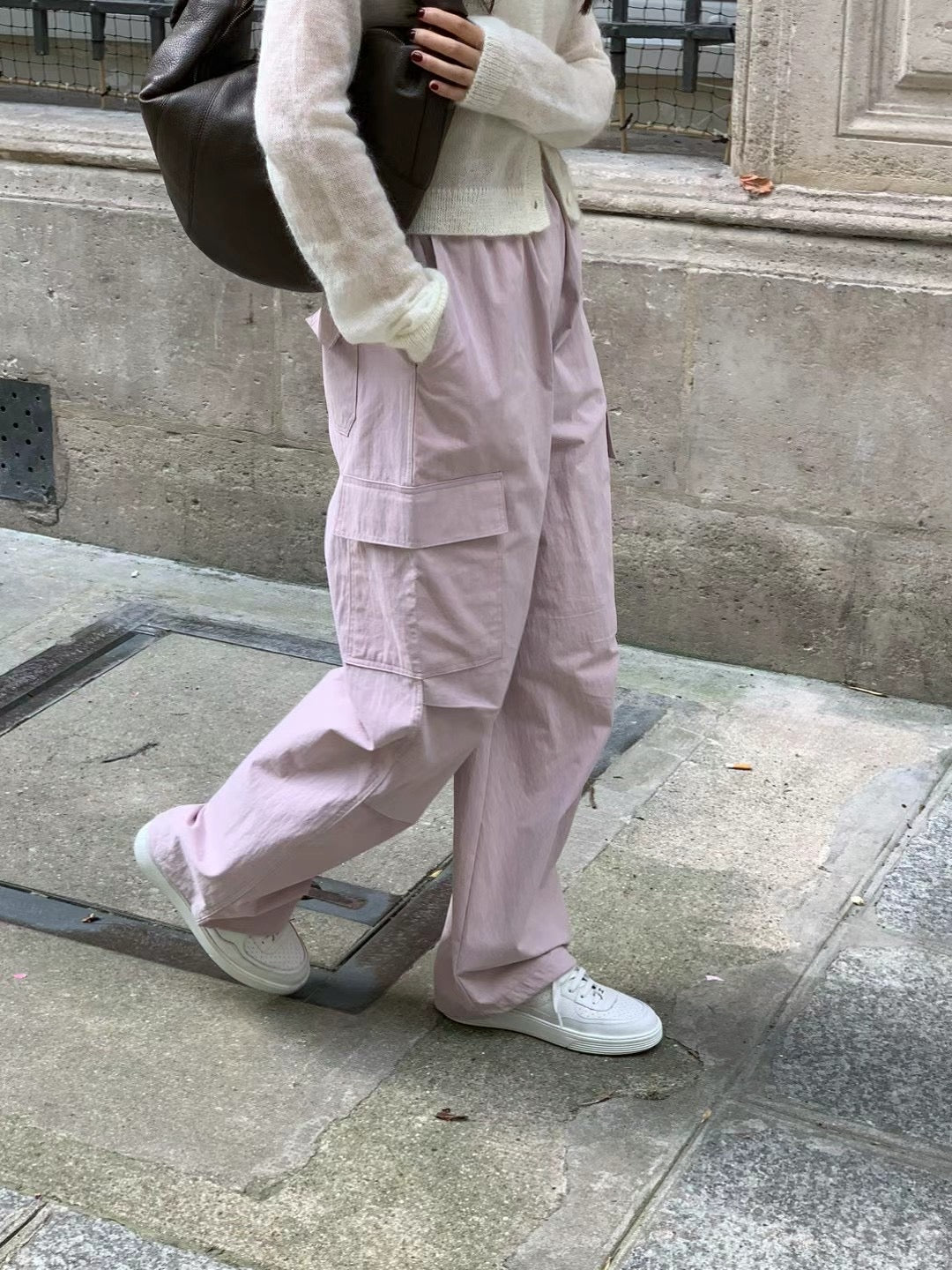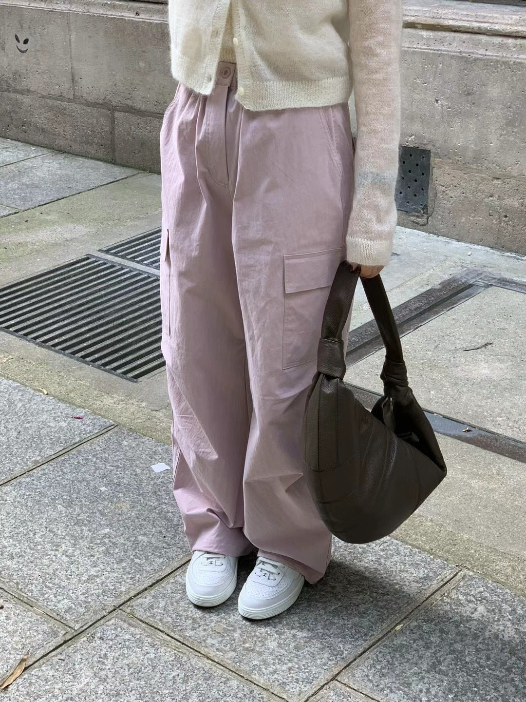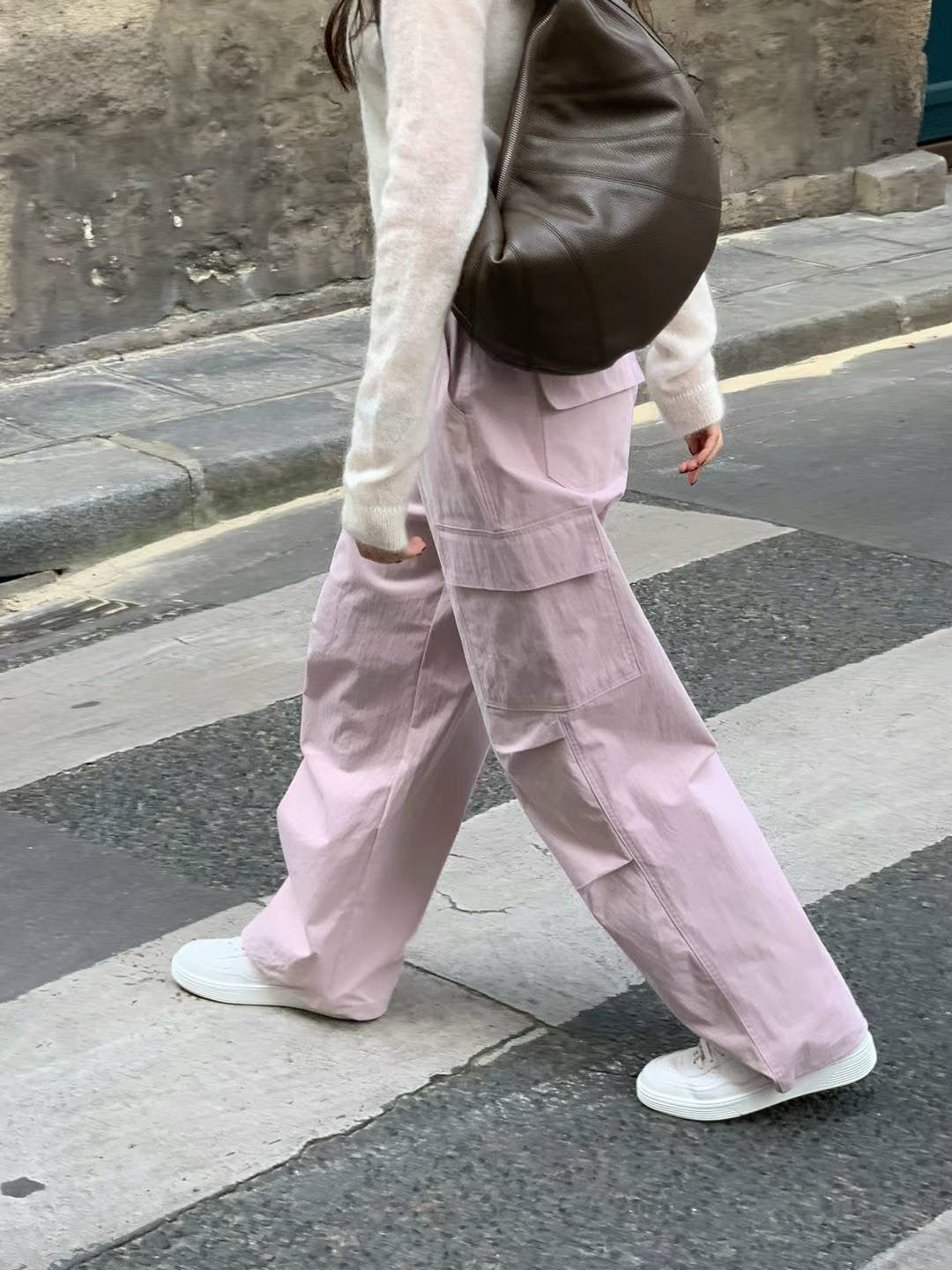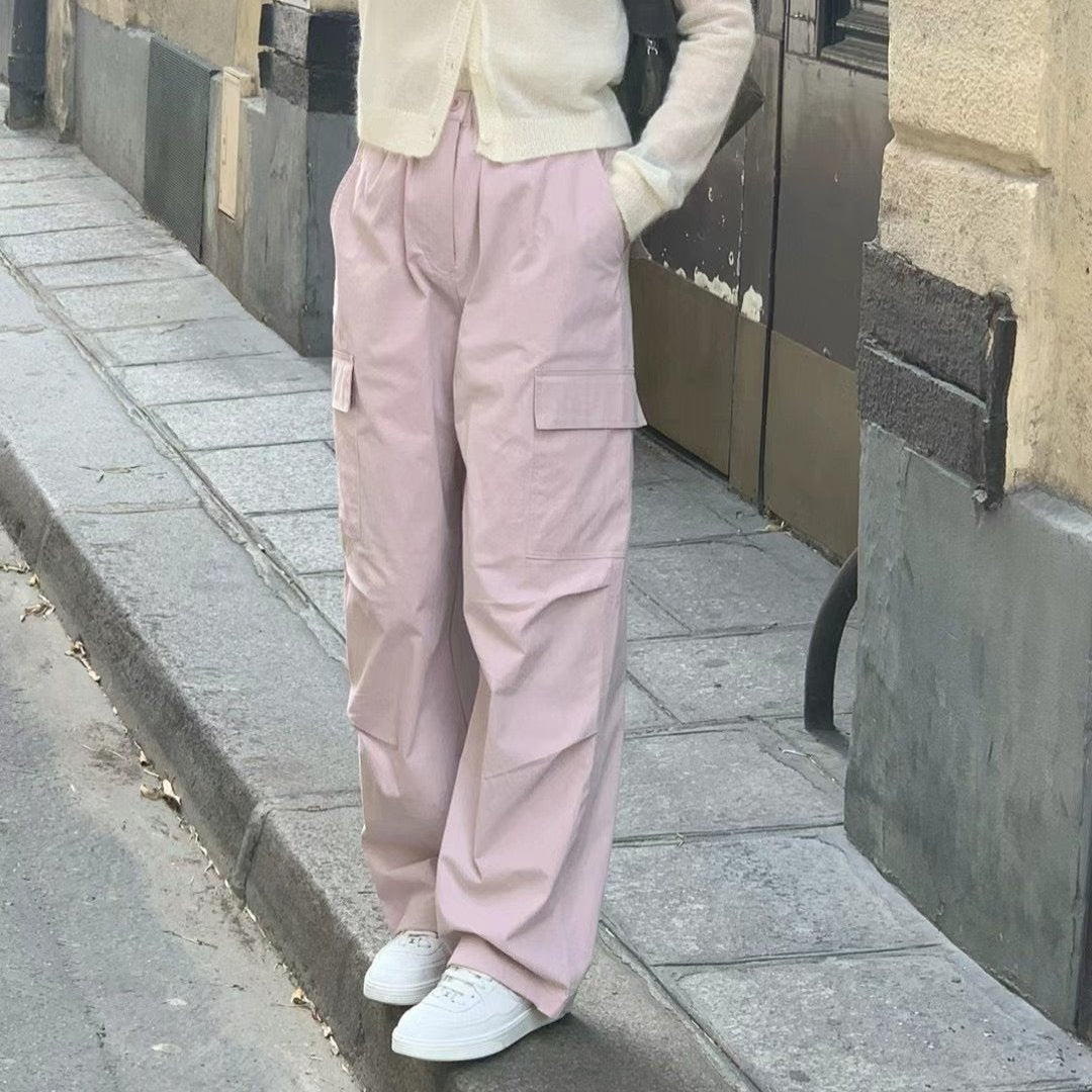 KOREAN COLLECTION 2410 工装系扣直筒休闲裤 粉