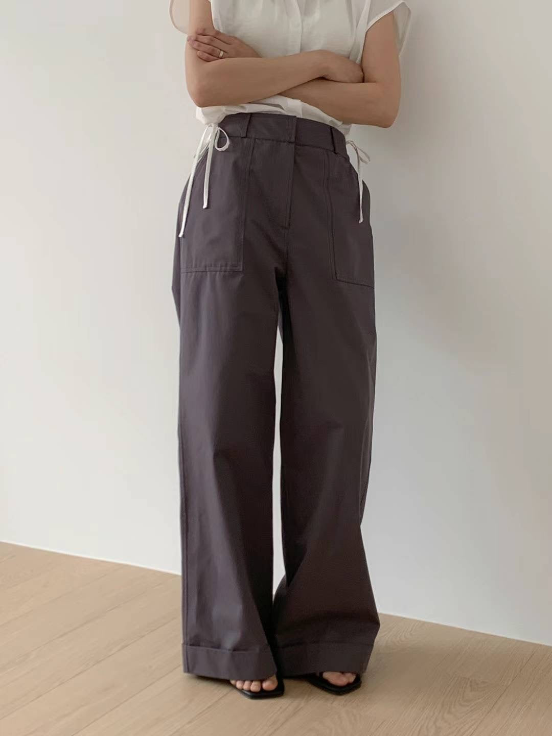 KOREAN COLLECTION 2410 系带垂感百搭阔腿裤(带腰带)