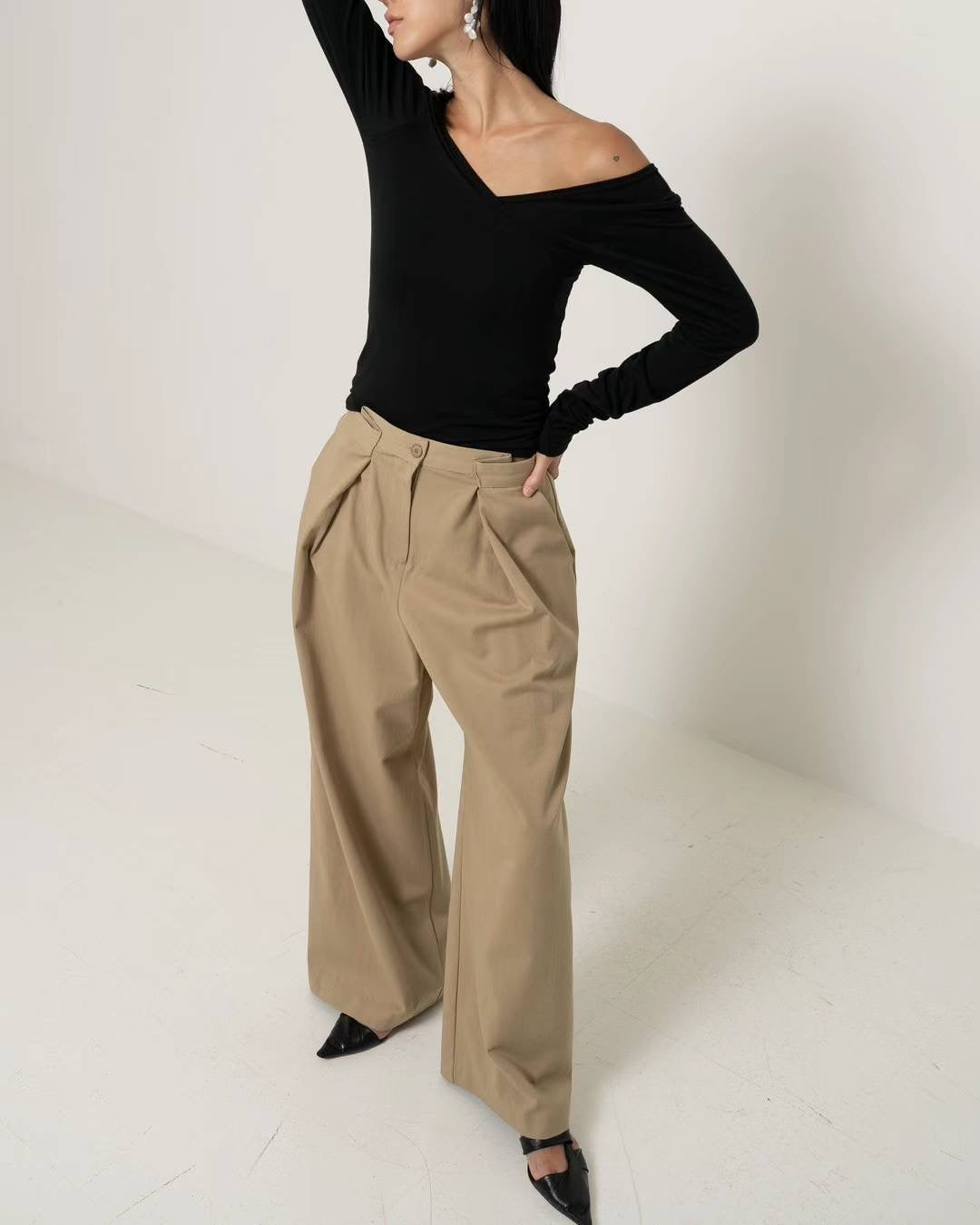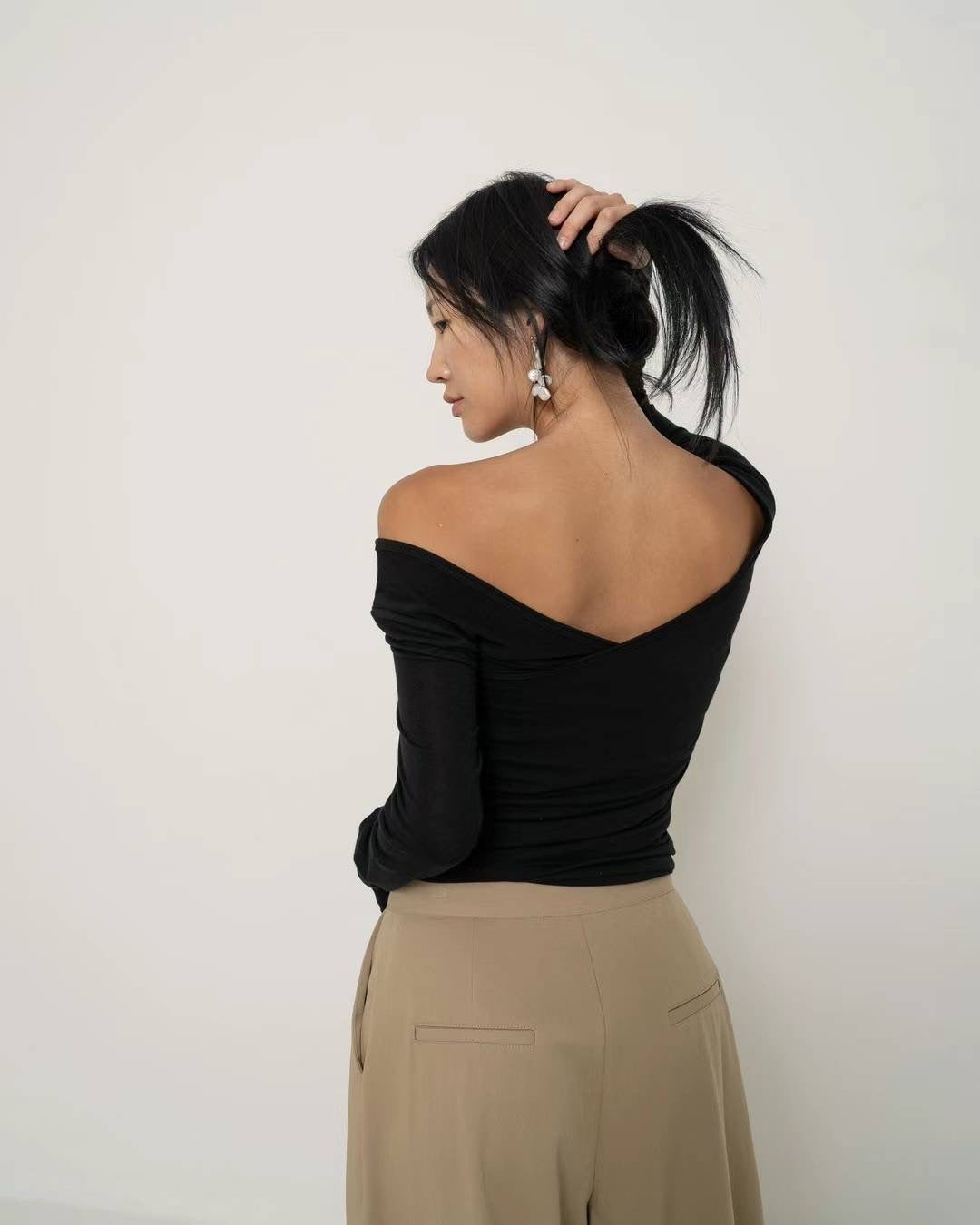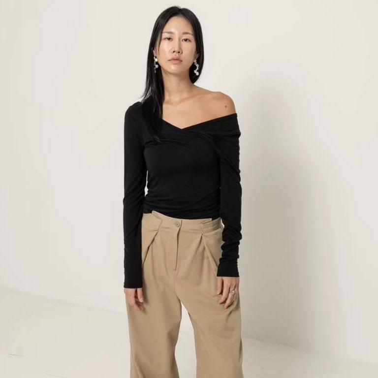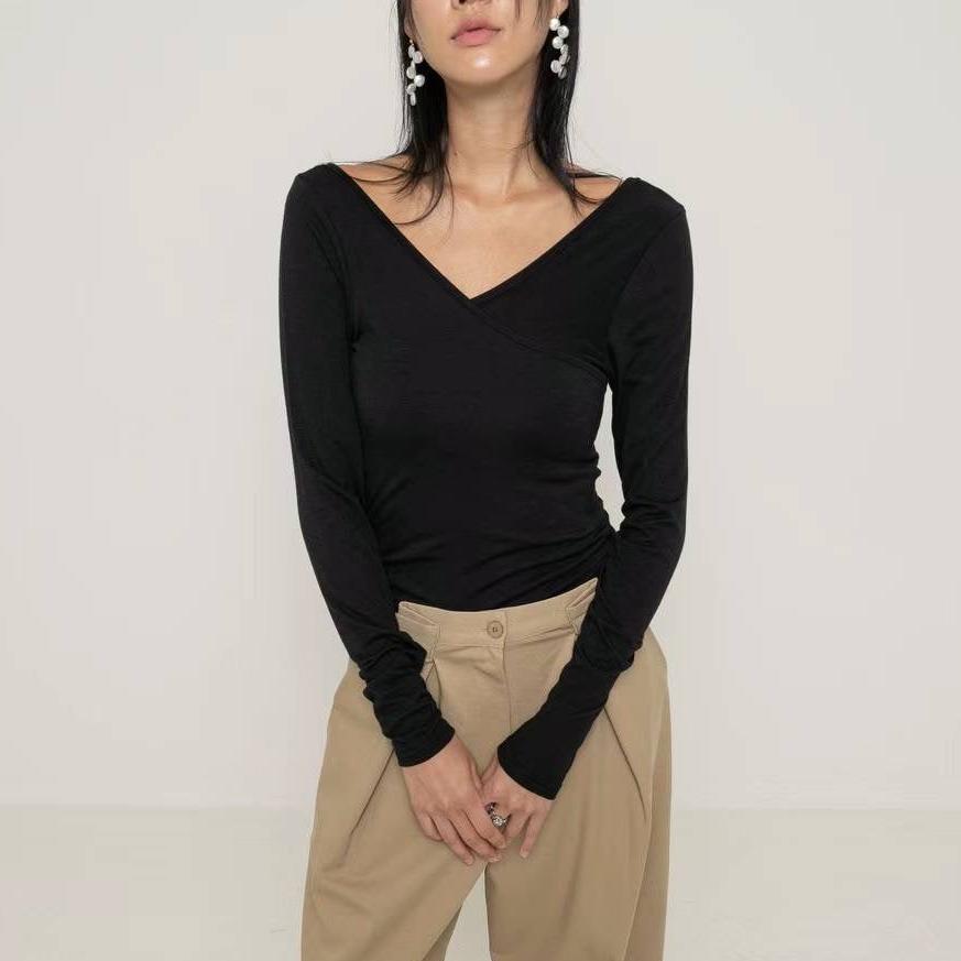 KOREAN COLLECTION 2410 大V领可一字肩长袖打底衫 黑